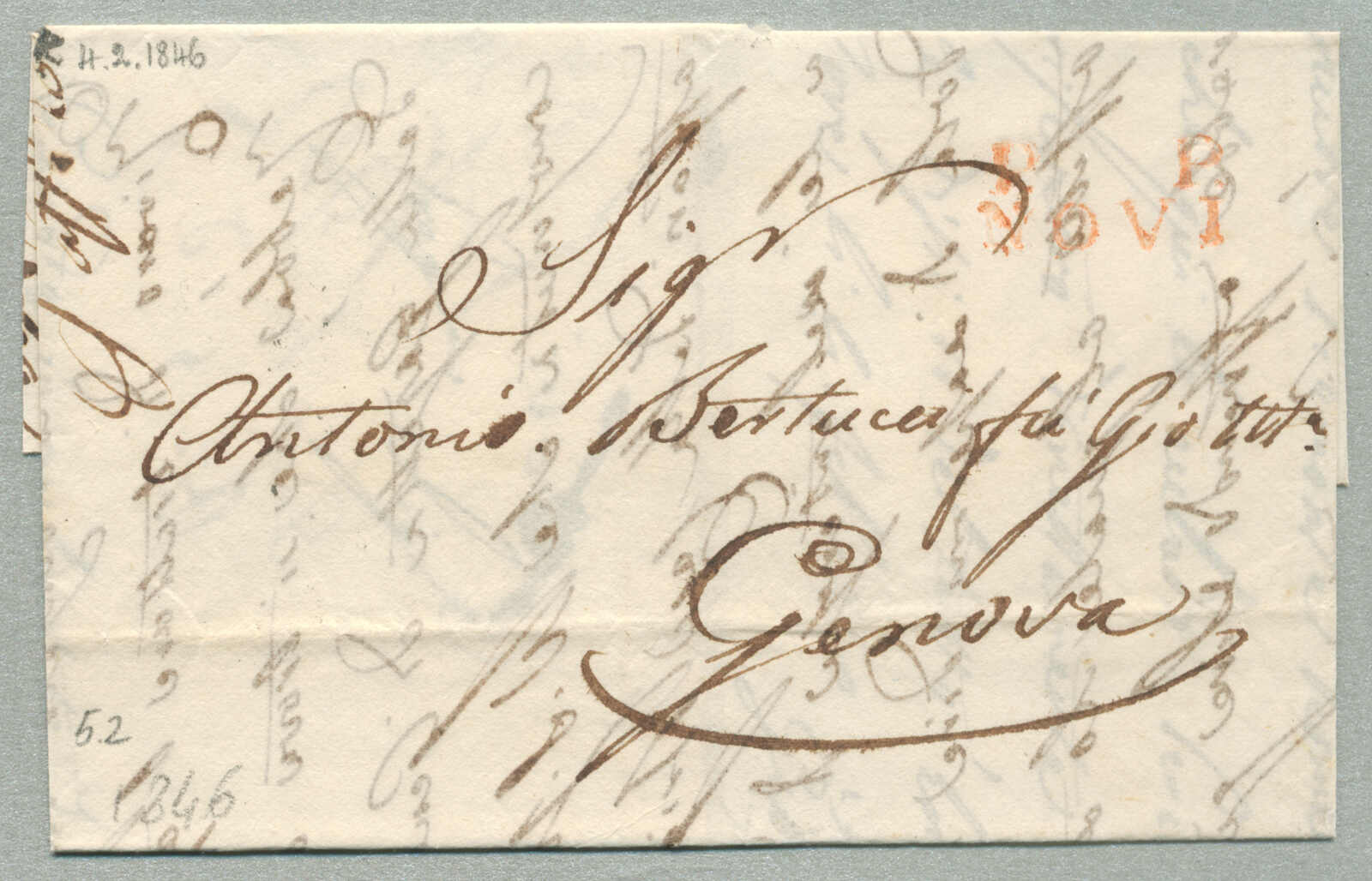 1846, with neatly strike of Novi, on folded letter, ex Provera, XF! Estimate 800€. (Image) (imagea)