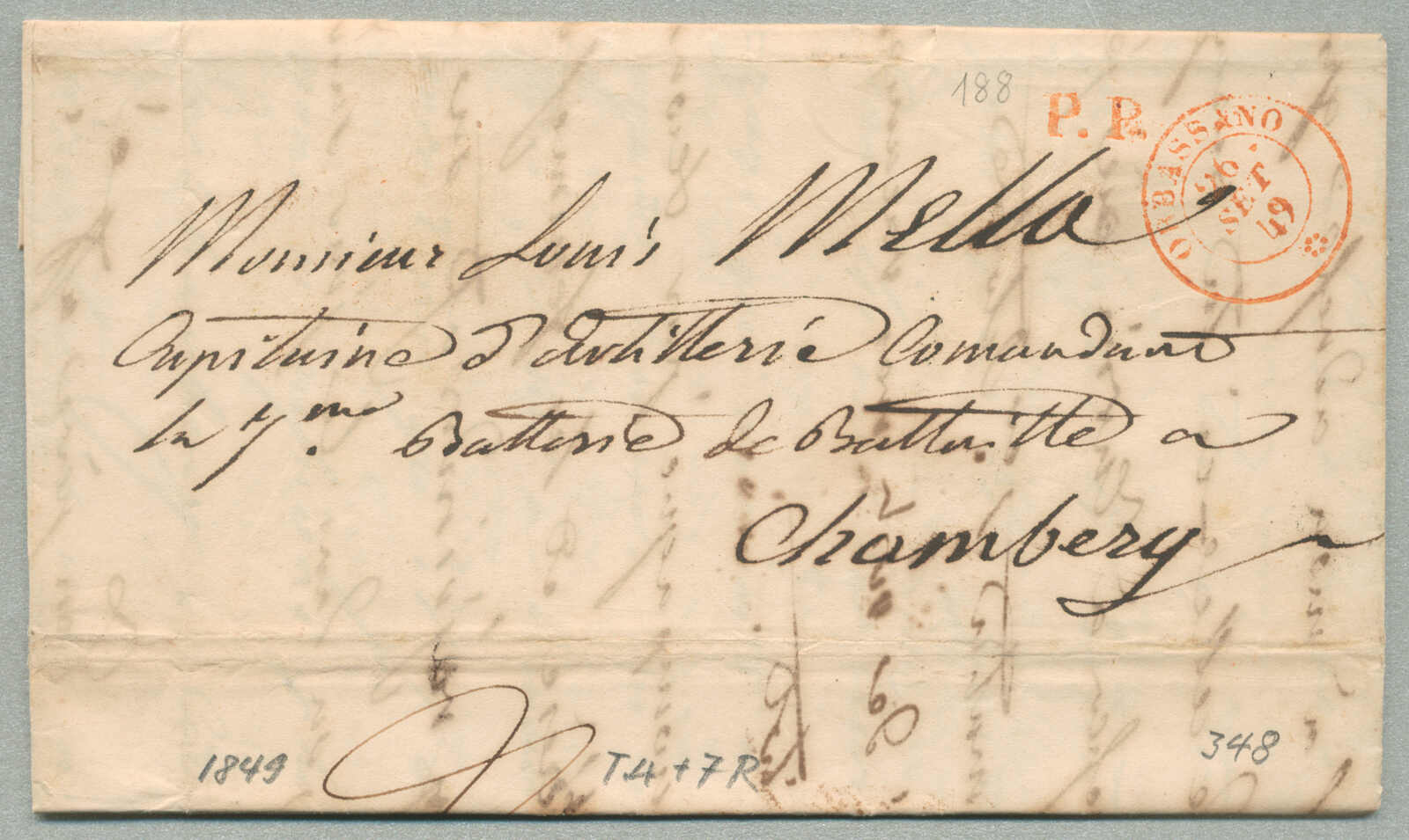 1841, with neatly strike of Oulx, on folded letter, ex Provera, XF! Estimate 160€. (Image) (imagea)