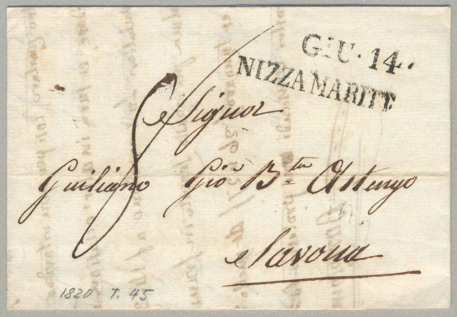 1820, with neatly strike of Nizza Maritt, on folded letter, ex Provera, XF! Estimate 160€. (Image) (imagea)
