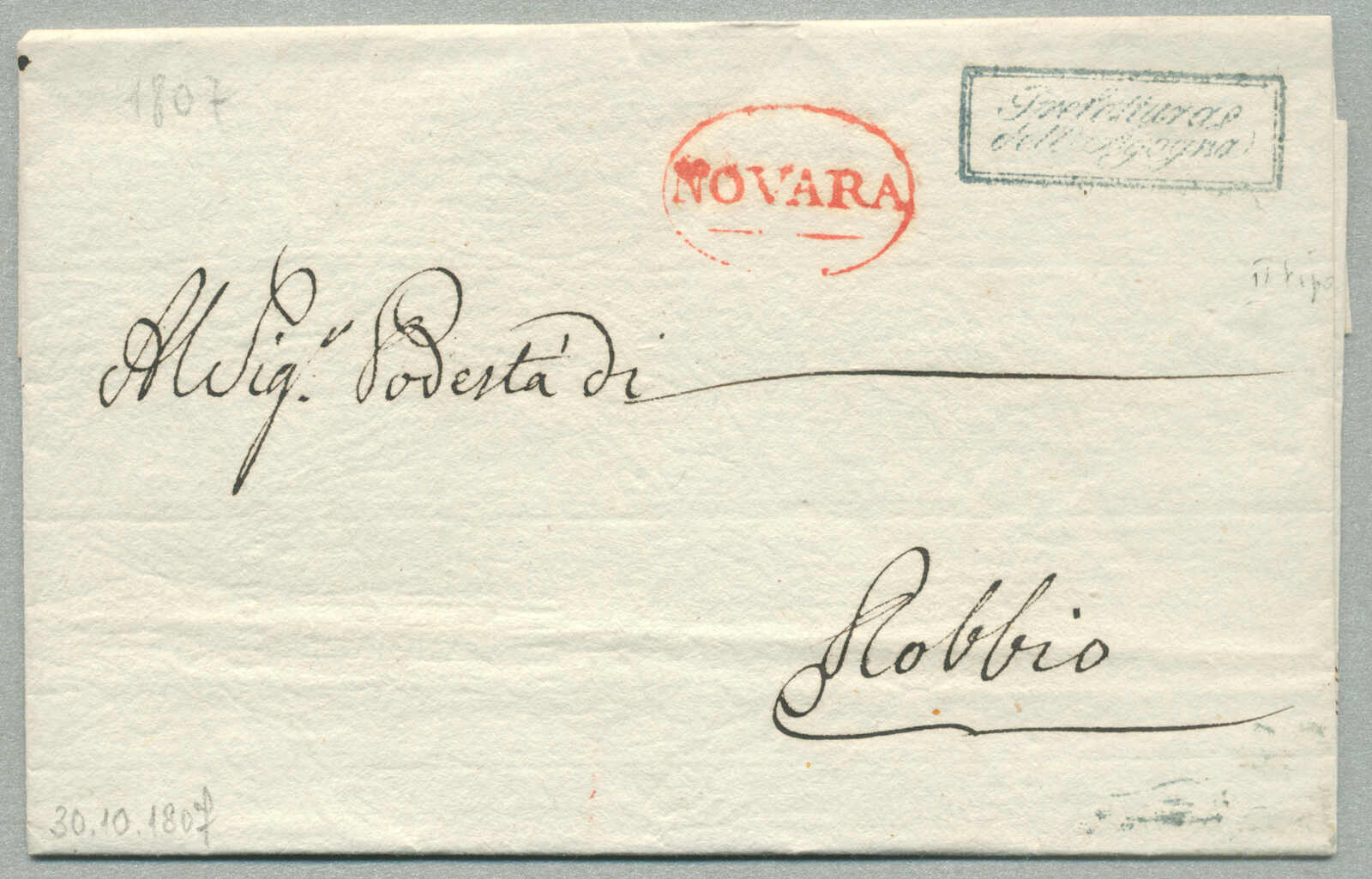 1807, with neatly strike of Novara, on folded letter, ex Provera, XF! Estimate 100€. (Image) (imagea)
