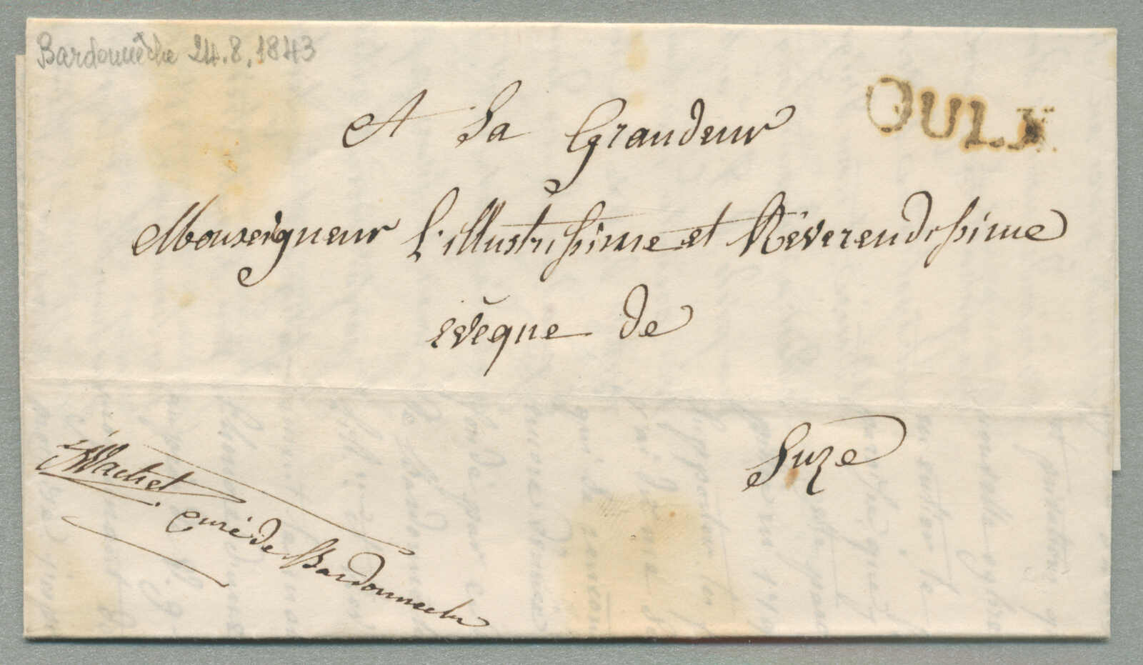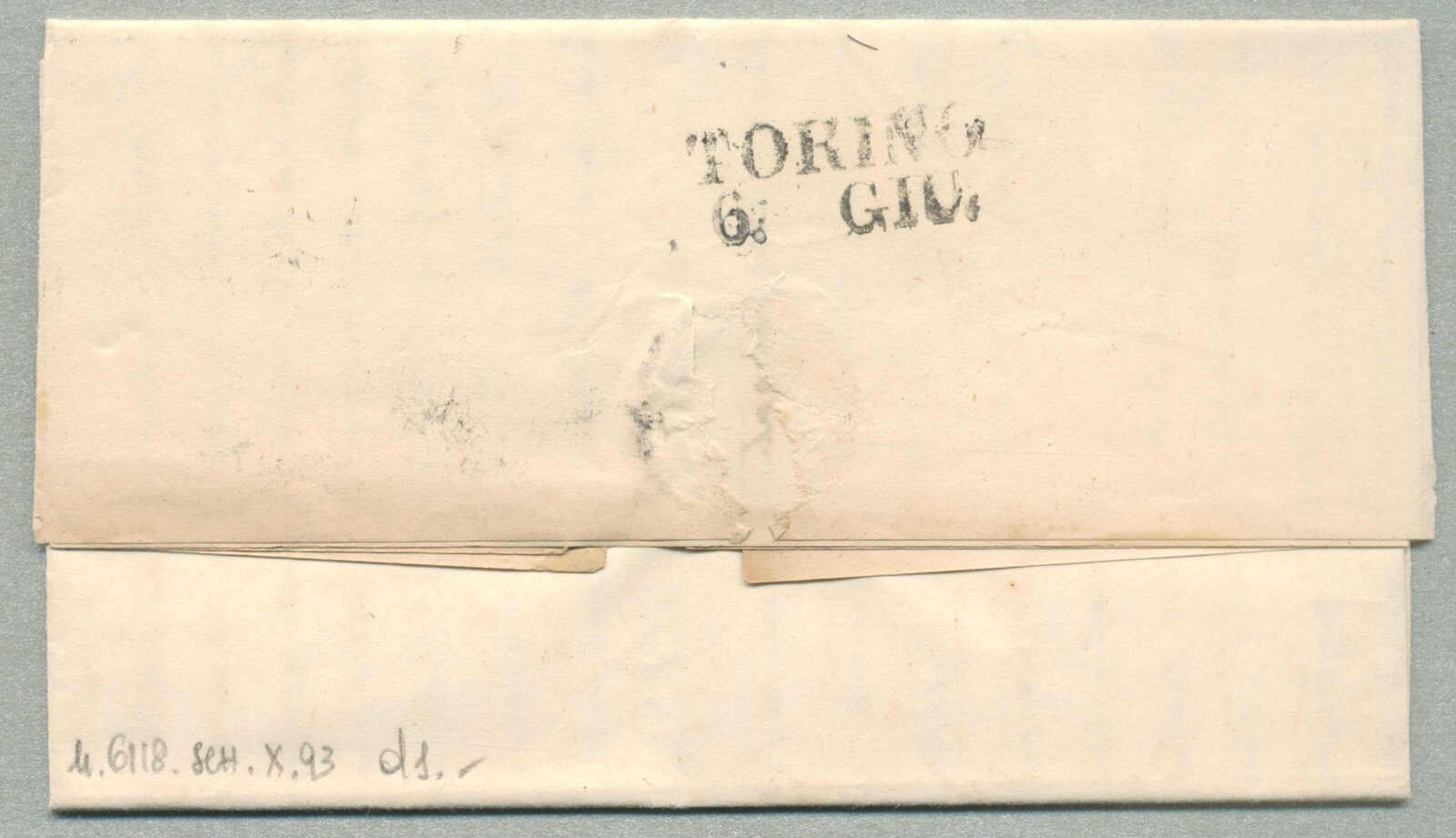 1843, with neatly strike of Oulx, on folded letter from Bardonneche, ex Provera, XF! Estimate 160€. (Image) (imagea)