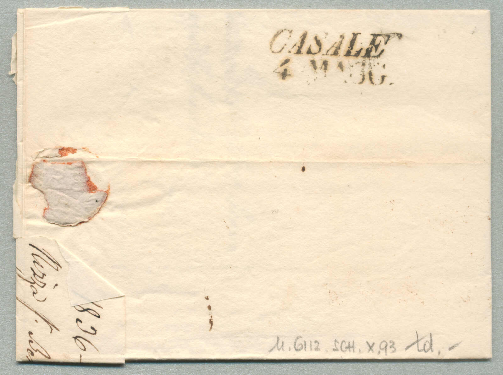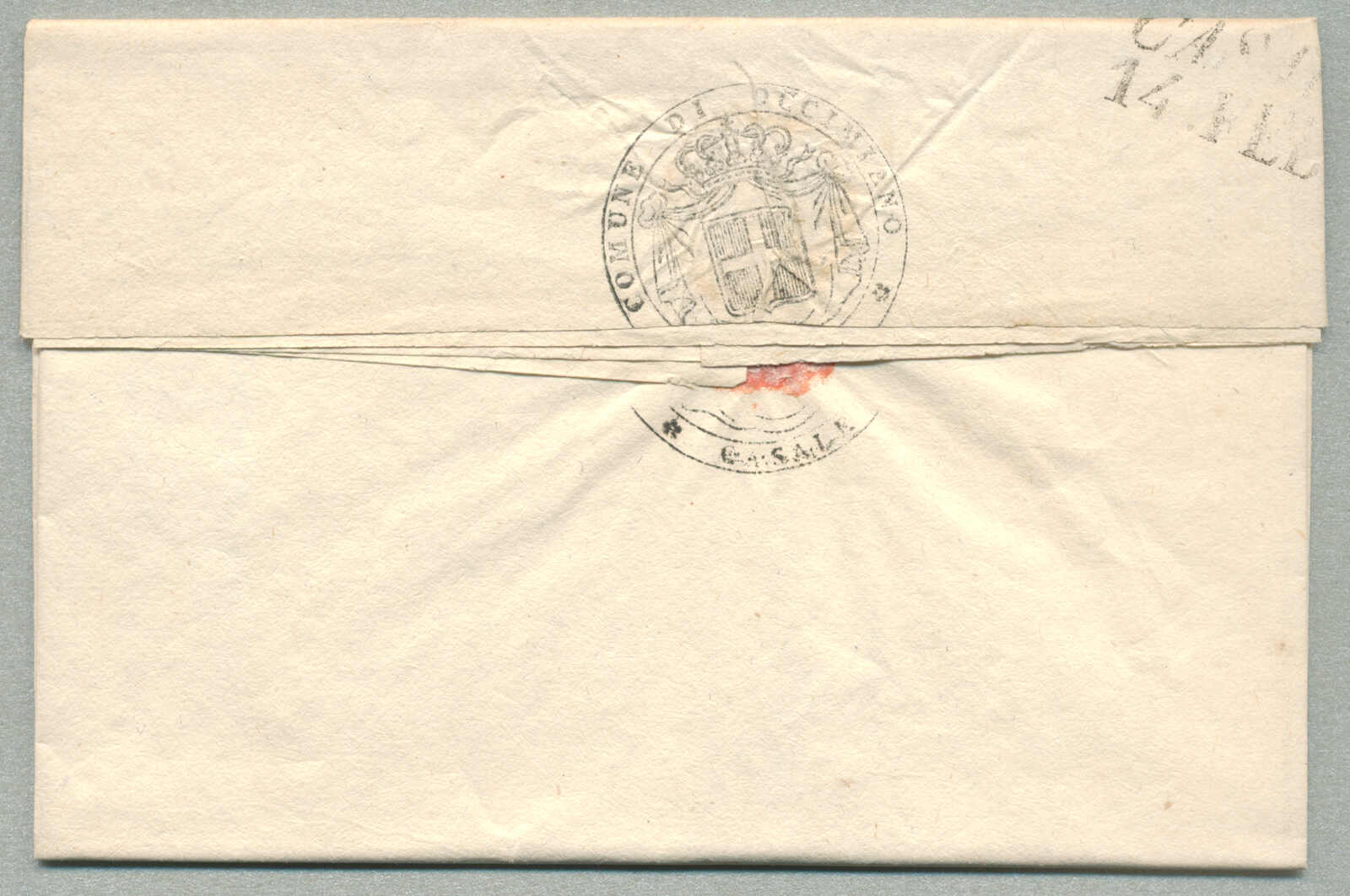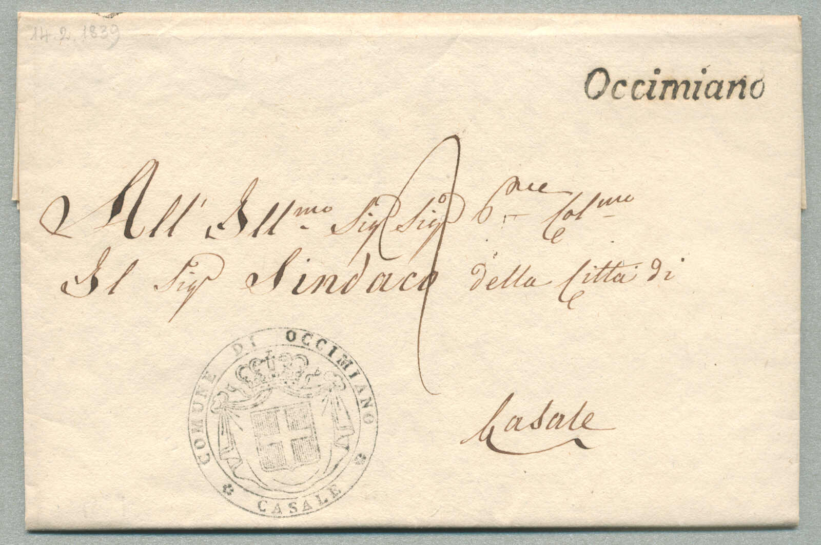 1839, with neatly strike of Occimiano, on folded letter, ex Provera, XF! Estimate 160€. (Image) (imagea)