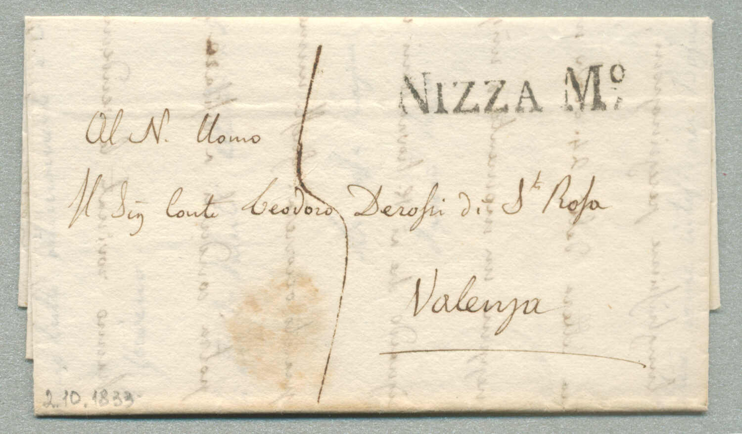 1833, with neatly strike of Nizza, on folded letter, ex Provera, XF! Estimate 120€. (Image) (imagea)