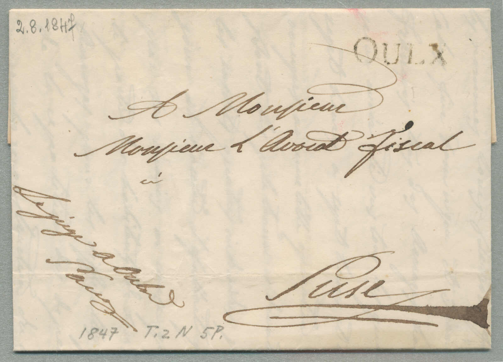 1847, with neatly strike of Oulx, on folded letter, ex Provera, XF! Estimate 160€. (Image) (imagea)