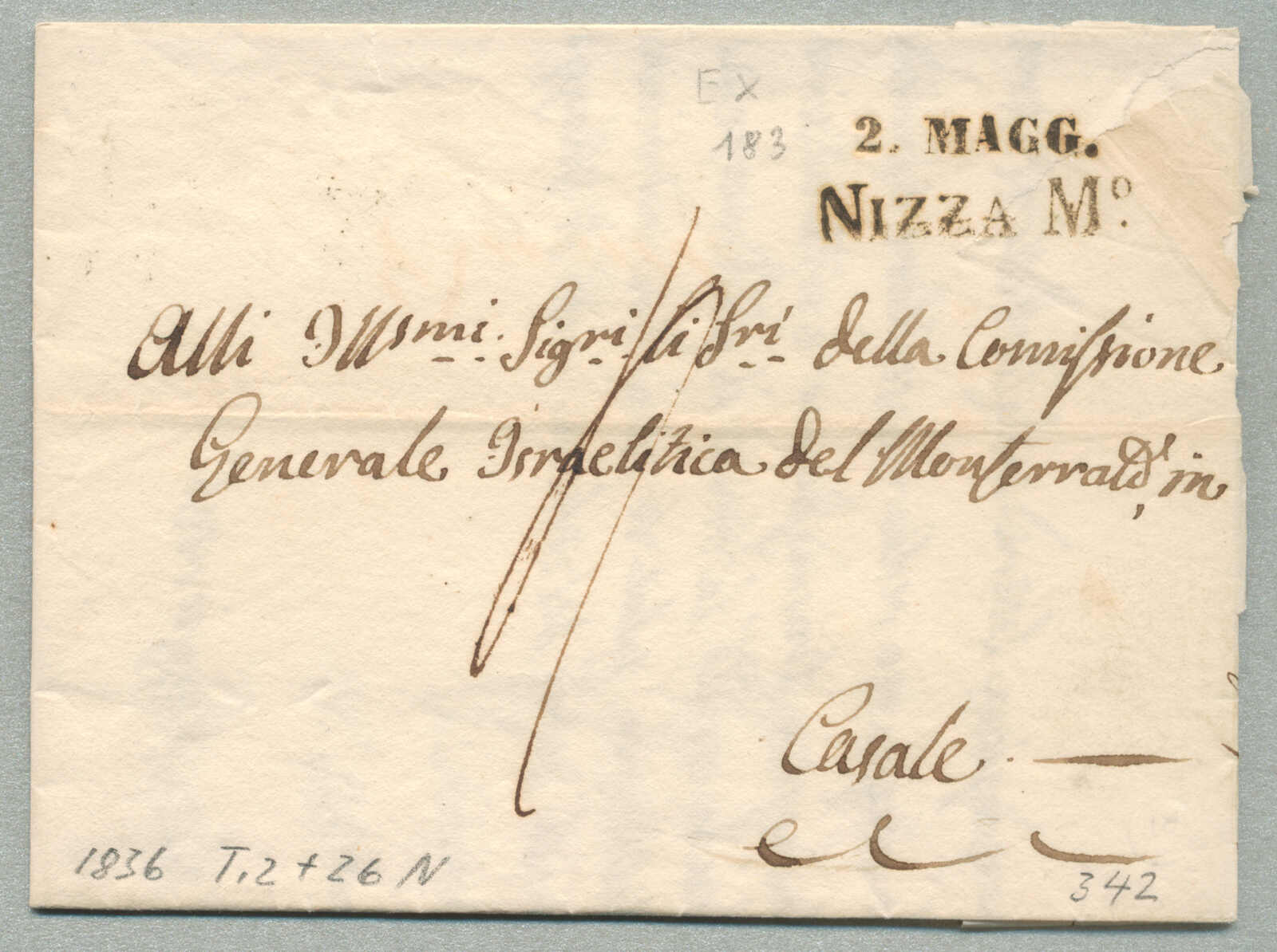 1836, with neatly strike of Nizza M(onferrato), on folded letter, ex Provera, XF! Estimate 120€. (Image) (imagea)