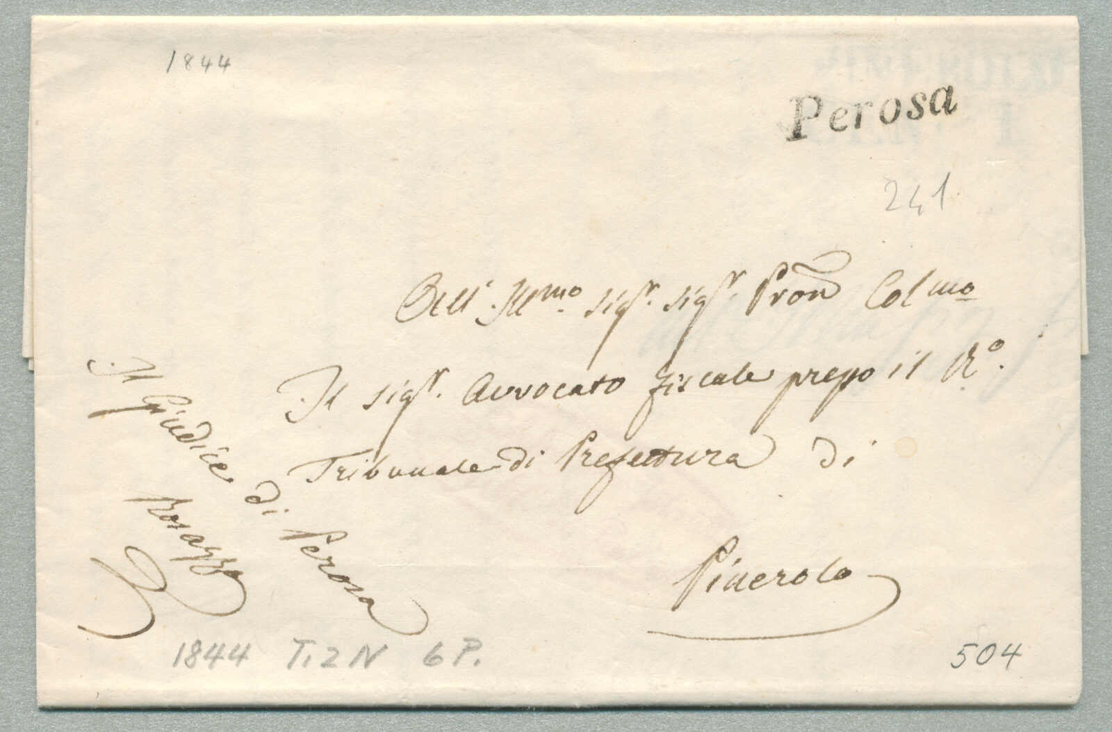 1844, with neatly strike of Perosa, on folded letter, ex Provera, XF! Estimate 300€. (Image) (imagea)