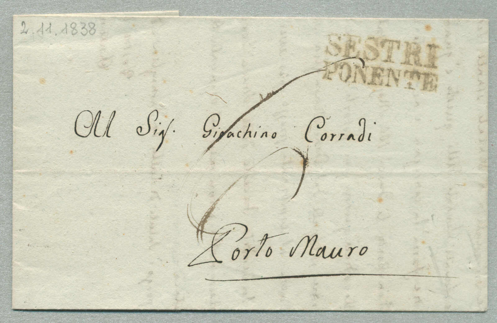 1838, with neatly strike of Sestri Ponente, on folded letter, ex Provera, XF! Estimate 400€. (Image) (imagea)