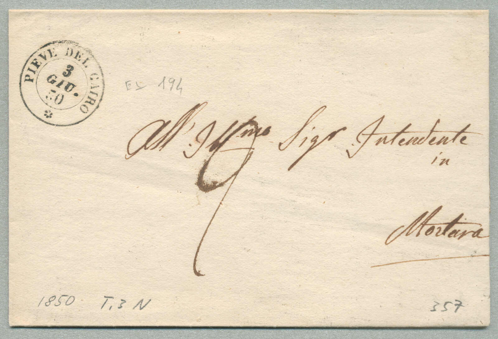 1850, with neatly strike of Pieve del Cairo, on folded letter, ex Provera, XF! Estimate 200€. (Image) (imagea)