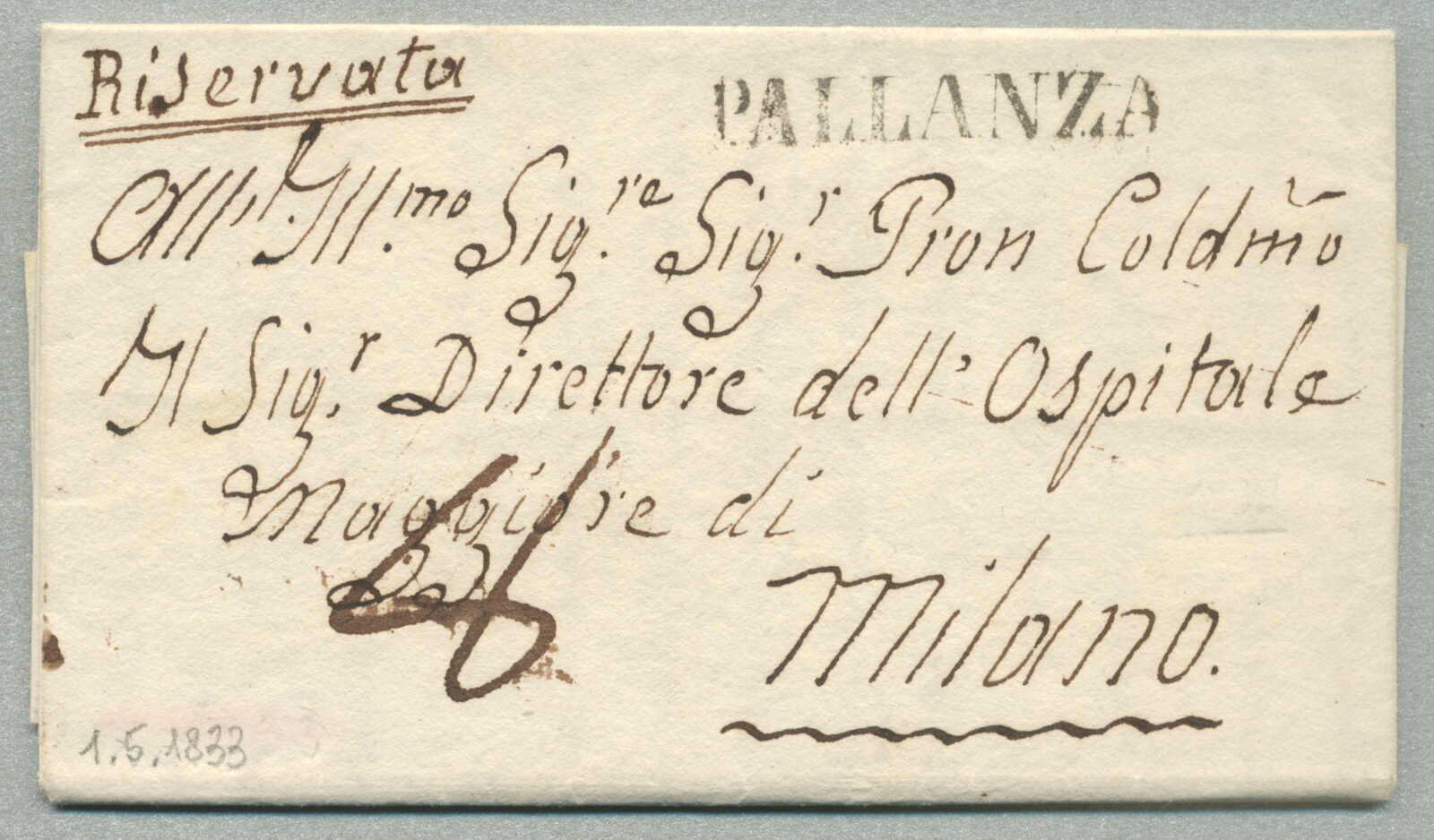 1833, with neatly strike of Pallanza, on folded letter, ex Provera, XF! Estimate 160€. (Image) (imagea)