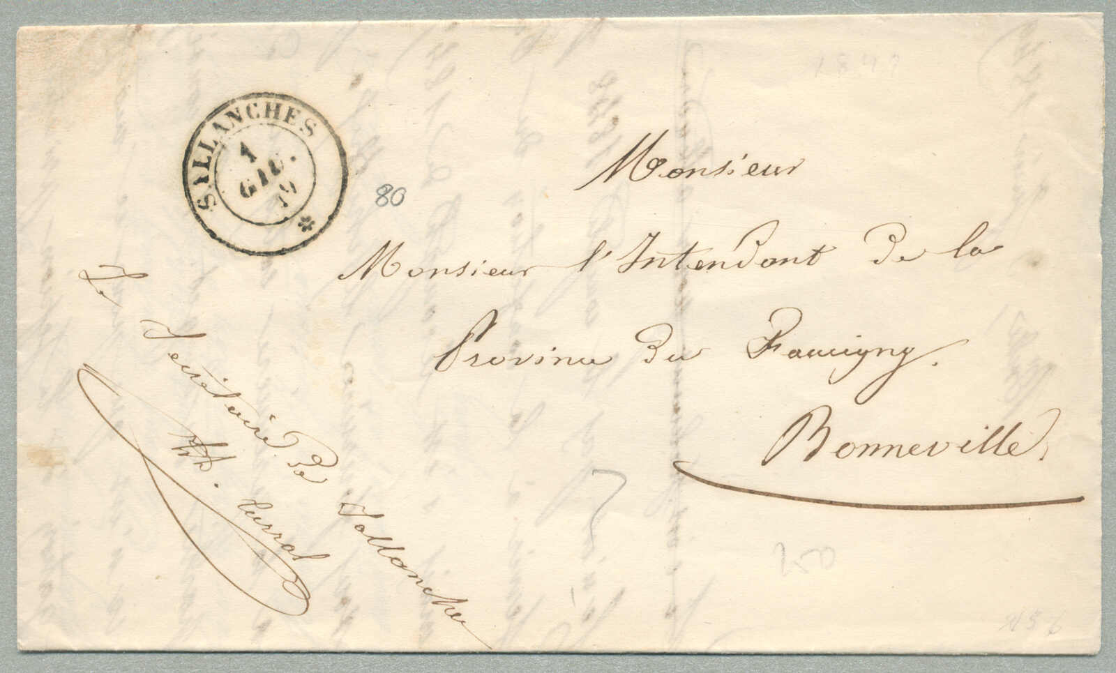 1849, with neatly strike of Sallanches, on folded letter, ex Provera, XF! Estimate 800€. (Image) (imagea)