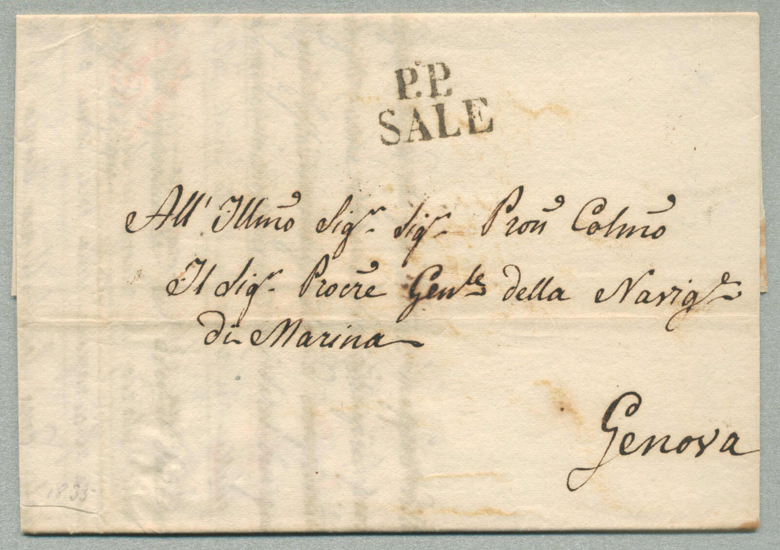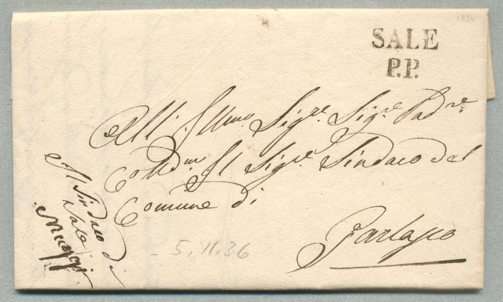 1836, with neatly strike of Sale P.P., on folded letter, ex Provera, XF! Estimate 160€. (Image) (imagea)