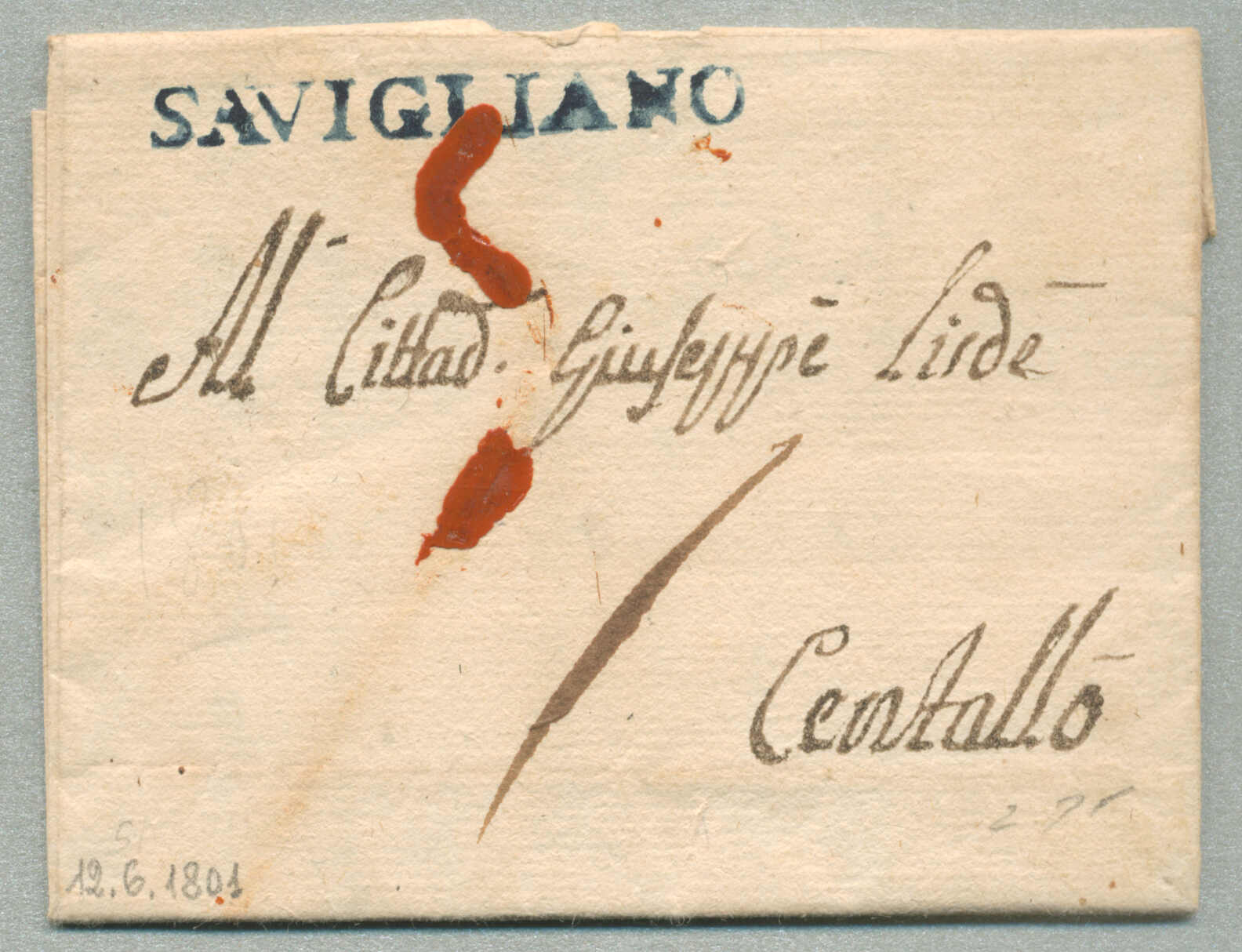 1801, with neatly strike of Savigliano, on folded letter, ex Provera, XF! Estimate 300€. (Image) (imagea)