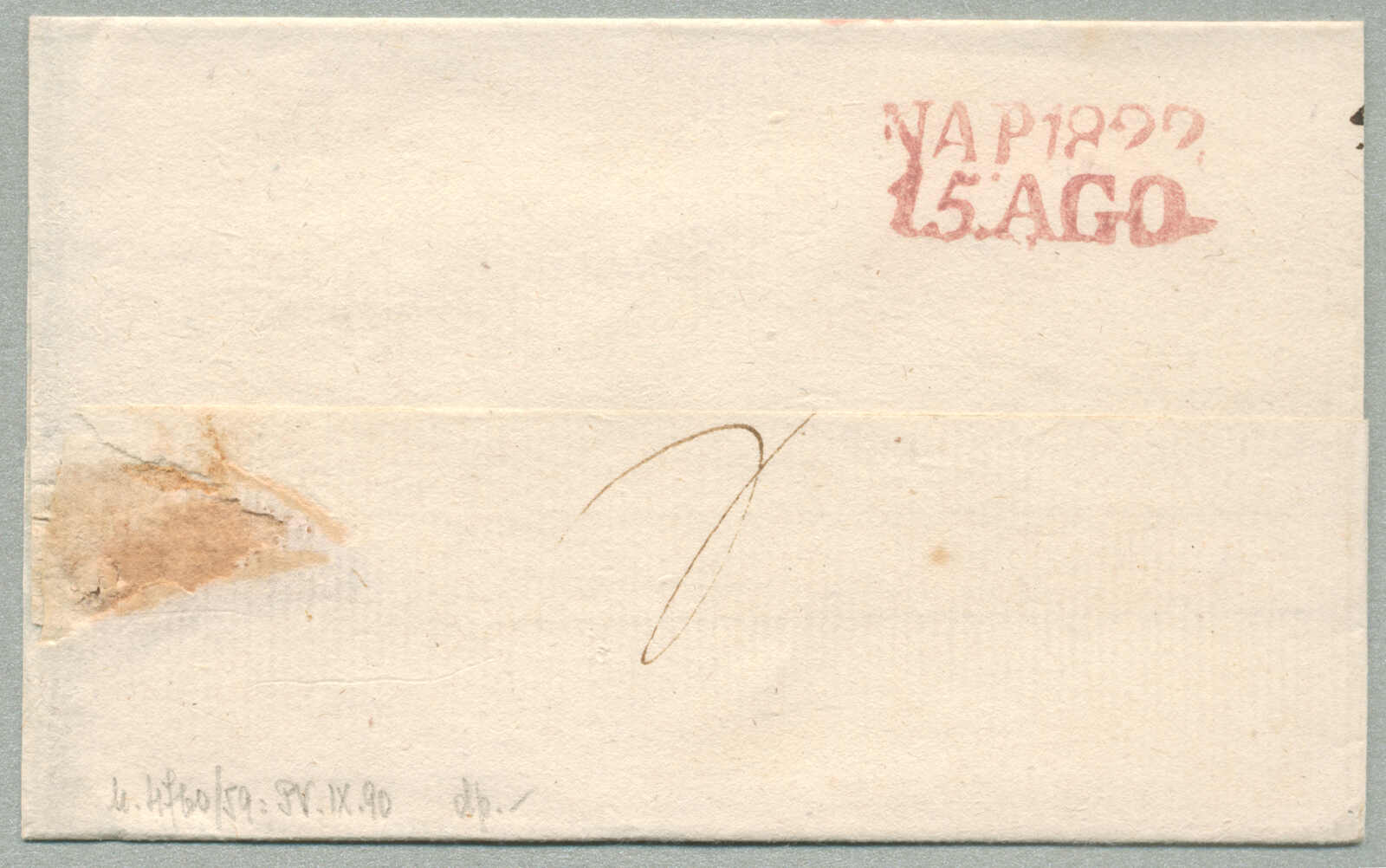 1835, with neatly strike of Sale, on folded letter, ex Provera, XF! Estimate 160€. (Image) (imagea)
