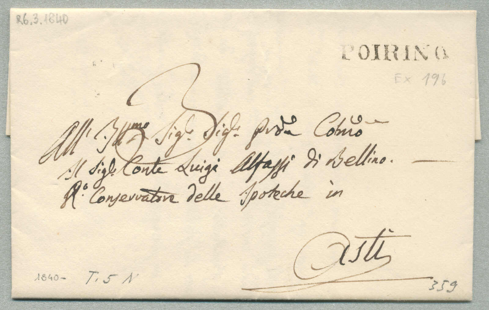 1840, with neatly strike of Poirino, on folded letter, ex Provera, XF! Estimate 120€. (Image) (imagea)