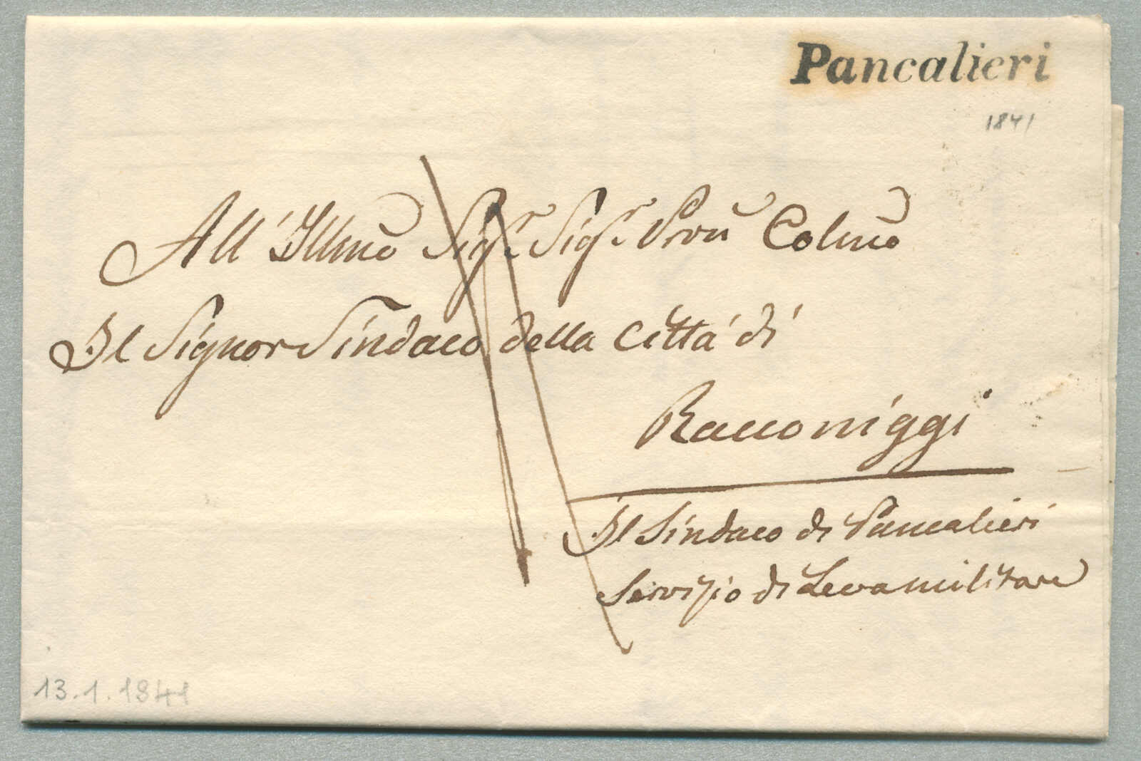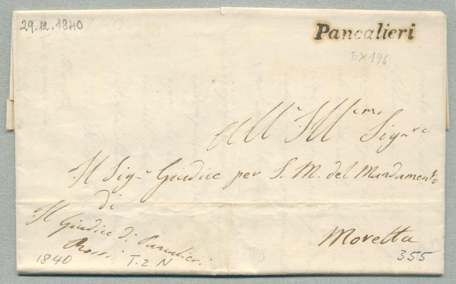 1840, with neatly strike of Pancalieri, on folded letter, ex Provera, XF! Estimate 160€. (Image) (imagea)