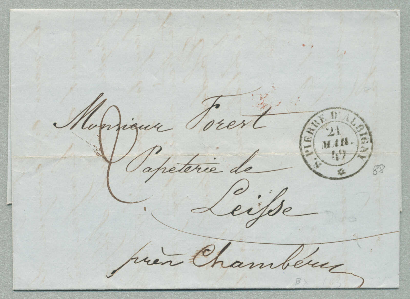 1849, with neatly strike of Pierre D Albigny, on folded letter, ex Provera, XF! Estimate 400€. (Image) (imagea)
