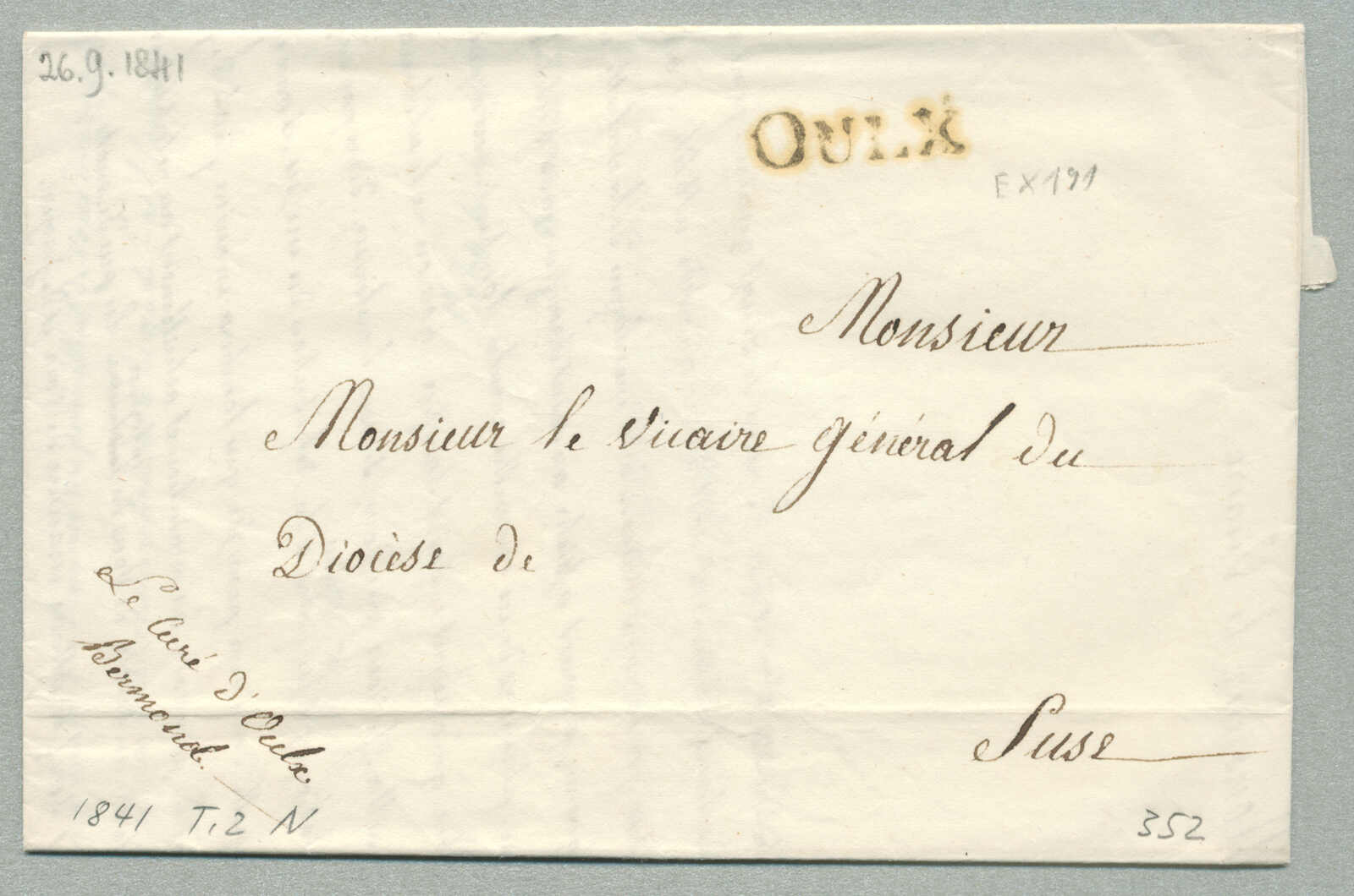 1841, with neatly strike of Oulx, on folded letter, ex Provera, XF! Estimate 200€. (Image) (imagea)