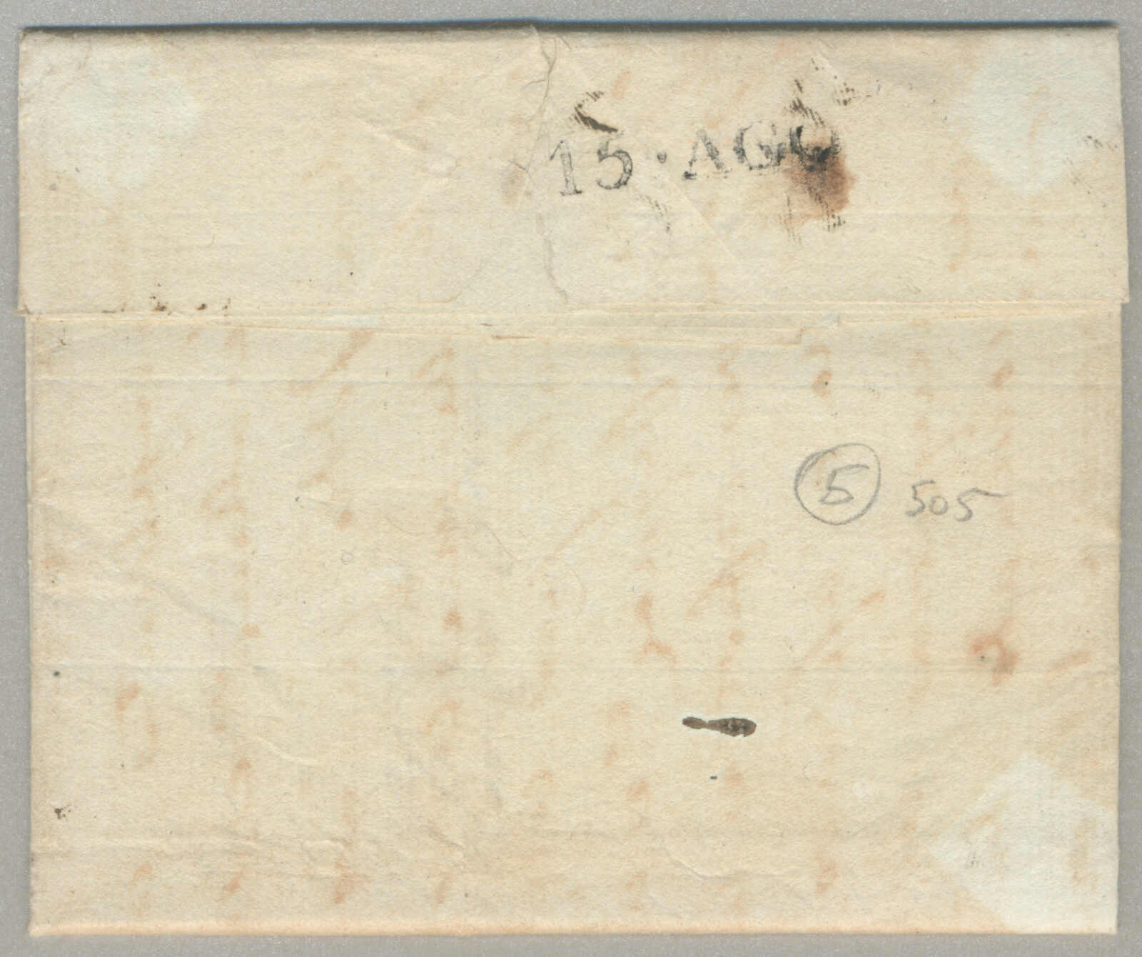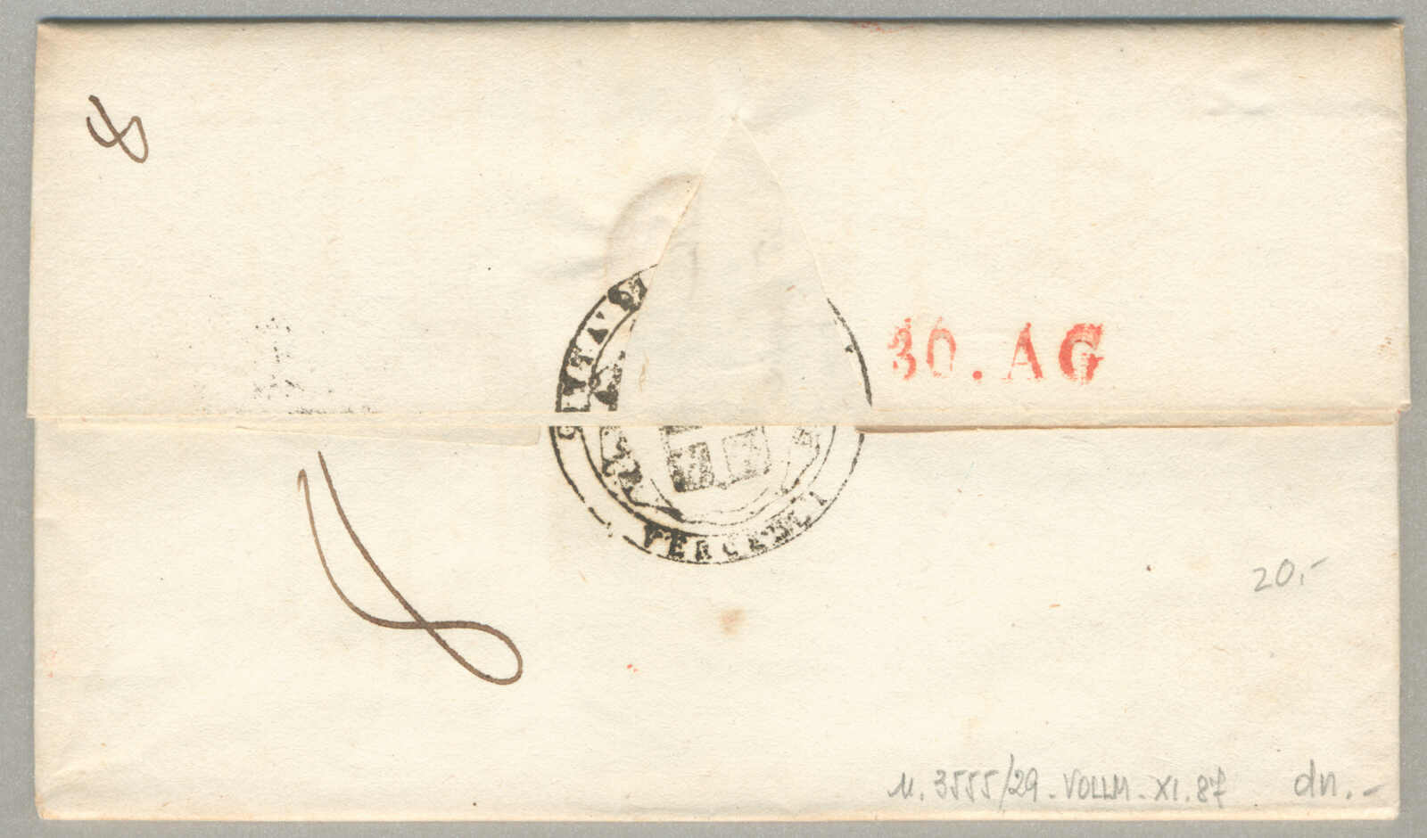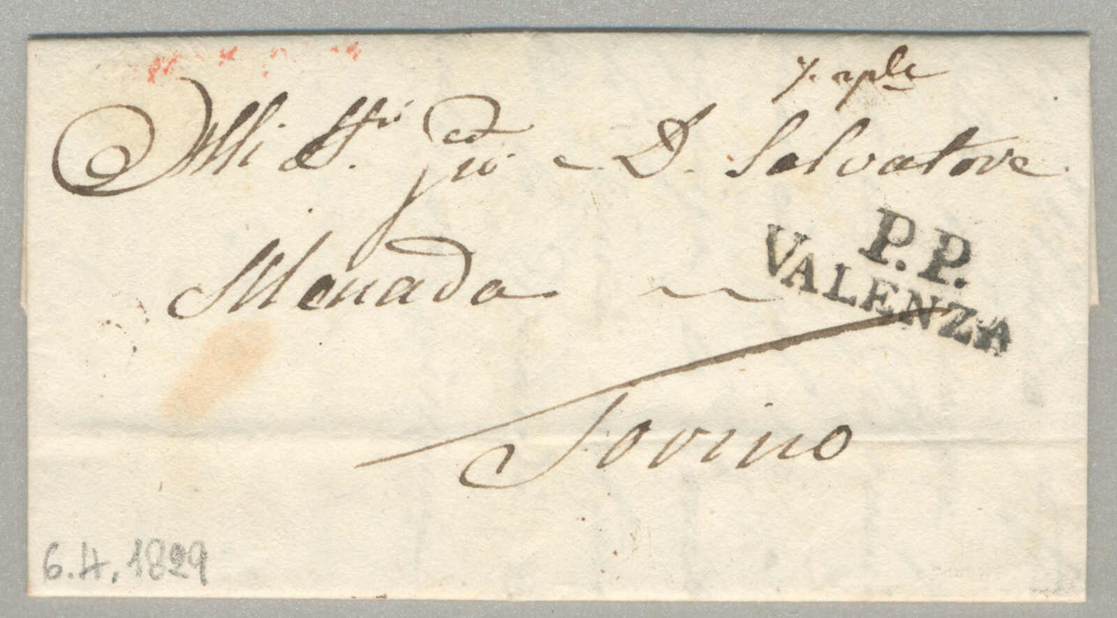 1829, with neatly strike of P.P. Valenza, on folded letter, ex Provera, XF! Estimate 160€. (Image) (imagea)
