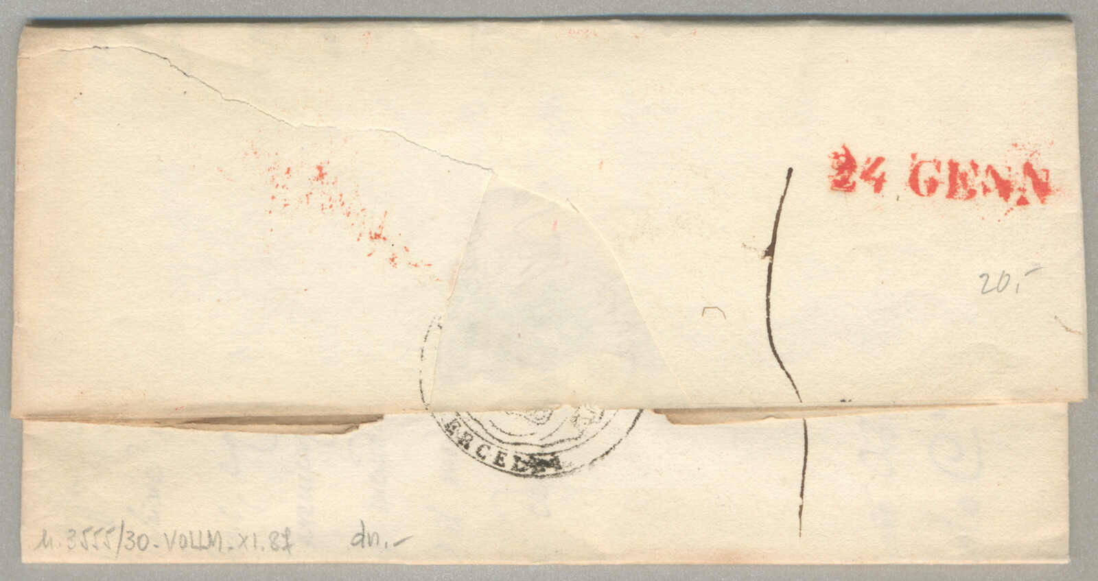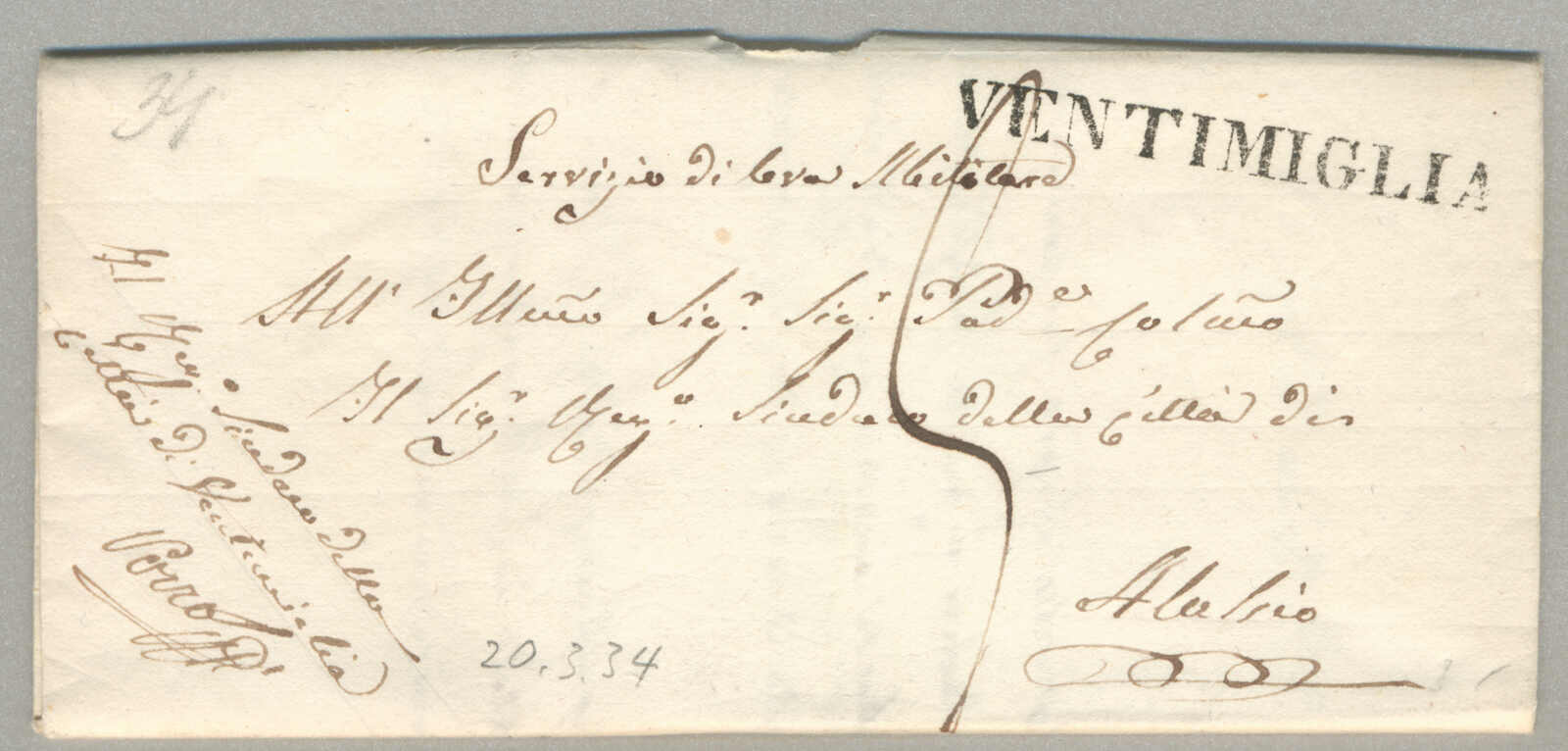 1834, with neatly strike of Ventimiglia, on folded letter, ex Provera, XF! Estimate 100€. (Image) (imagea)