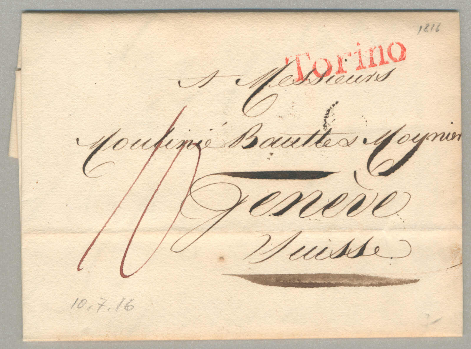 1816, with neatly strike of Torino, on folded letter, ex Provera, XF! Estimate 80€. (Image) (imagea)