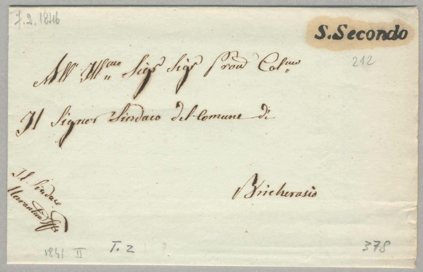 1841, with neatly strike of S. Secondo, on folded letter, ex Provera, XF! Estimate 400€. (Image) (imagea)