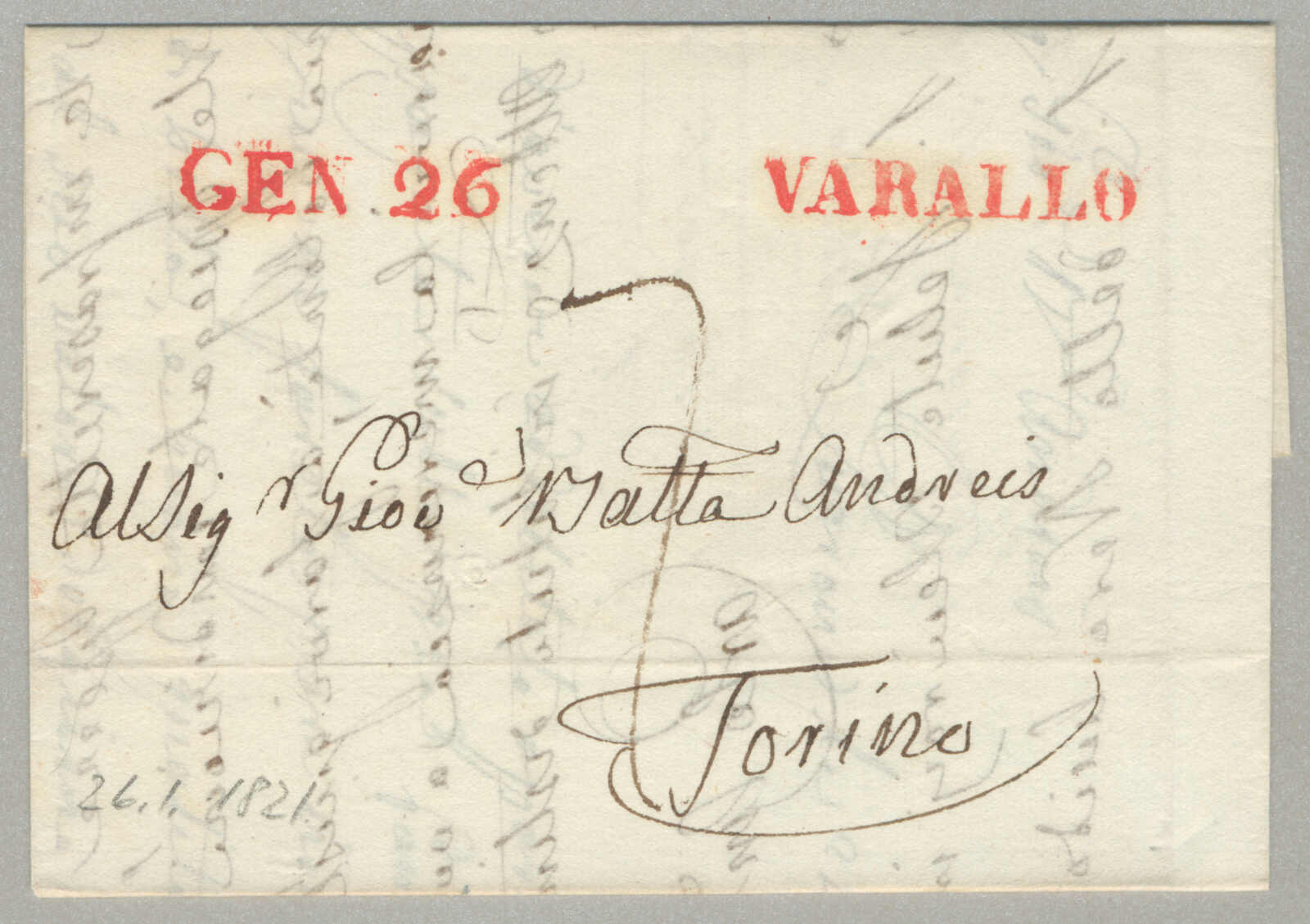 1821, with neatly strike of Varallo, on folded letter, ex Provera, XF! Estimate 80€. (Image) (imagea)