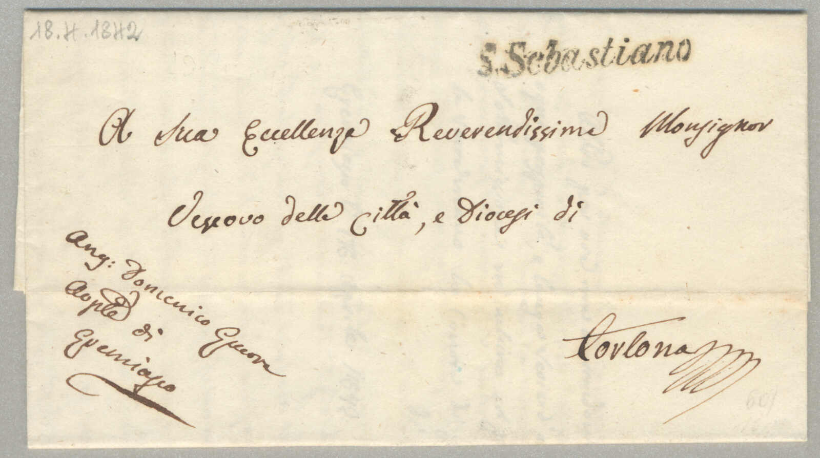 1842, with neatly strike of S. Sebastiano, on folded letter, ex Provera, XF! Estimate 800€. (Image) (imagea)