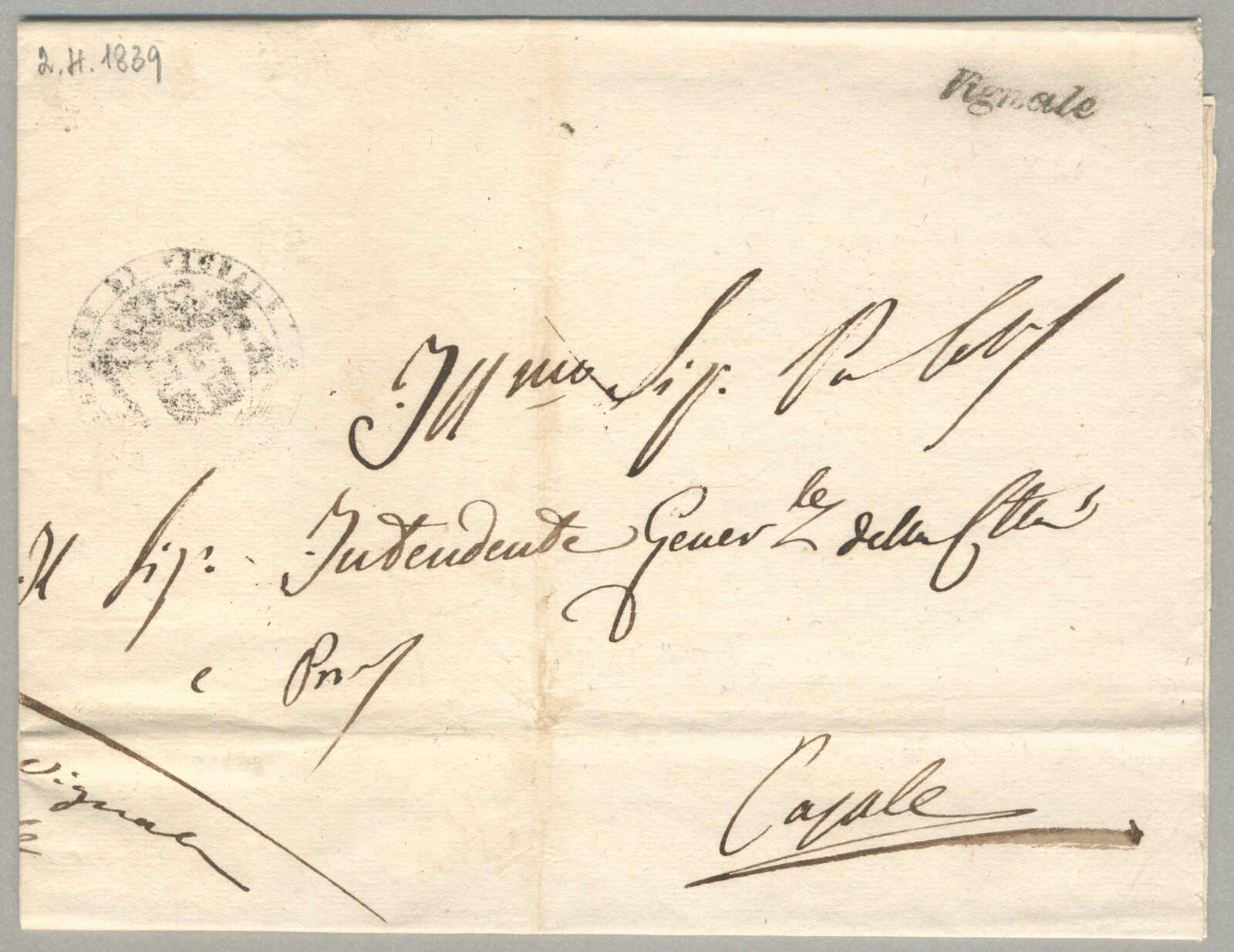 1839, with neatly strike of Vignale, on folded letter, ex Provera, XF! Estimate 800€. (Image) (imagea)