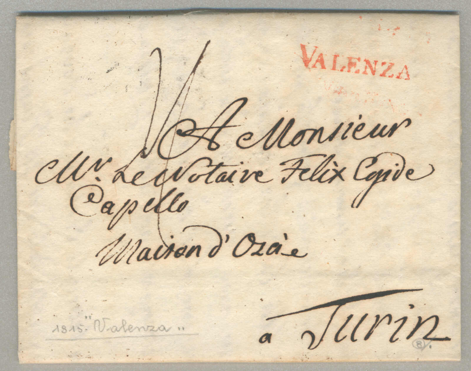 1815, with neatly strike of Valenza, on folded letter, ex Provera, XF! Estimate 100€. (Image) (imagea)