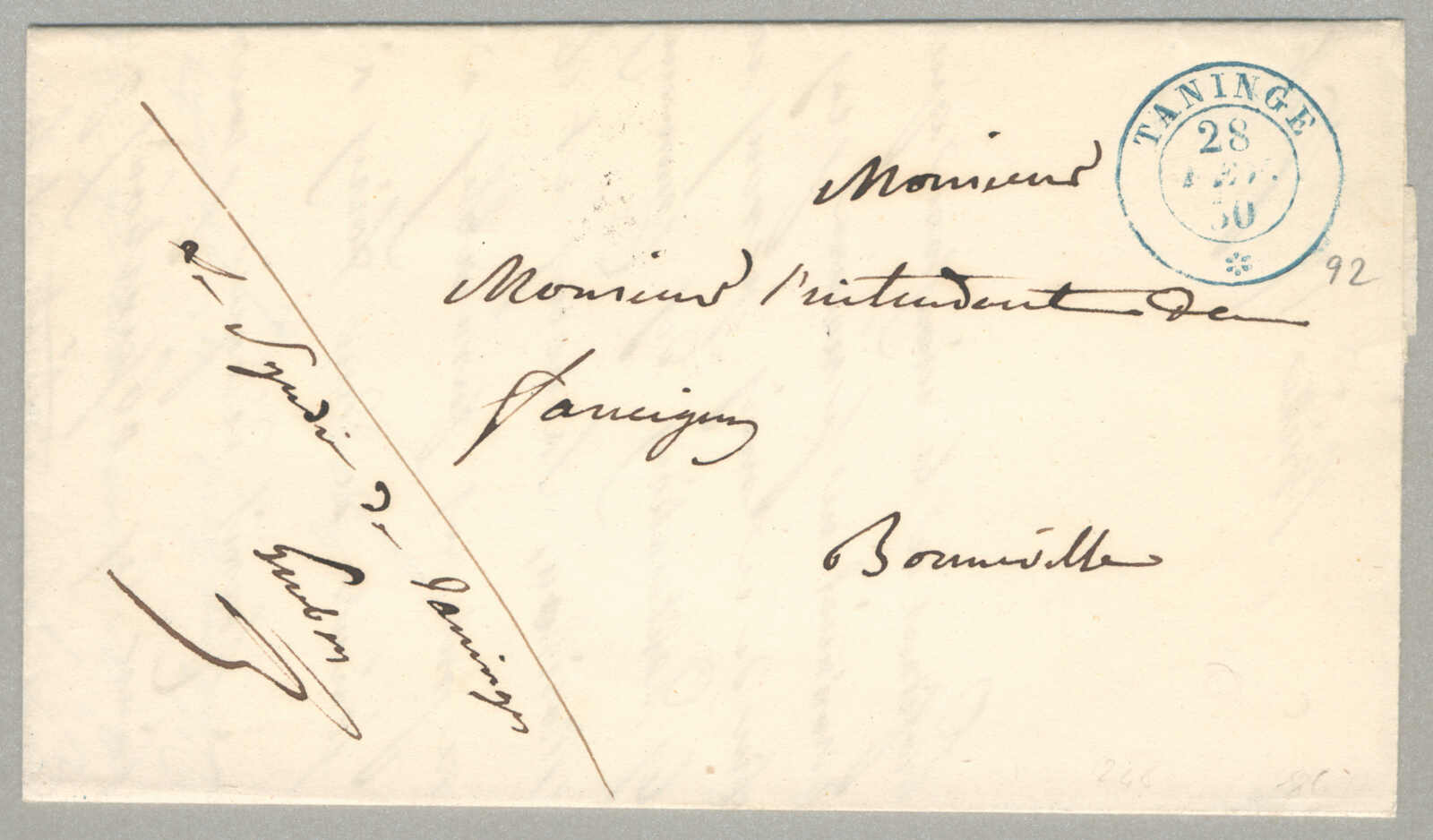 1850, with neatly blue strike of Taninges, on folded letter, ex Provera, XF! Estimate 1.000€. (Image) (imagea)