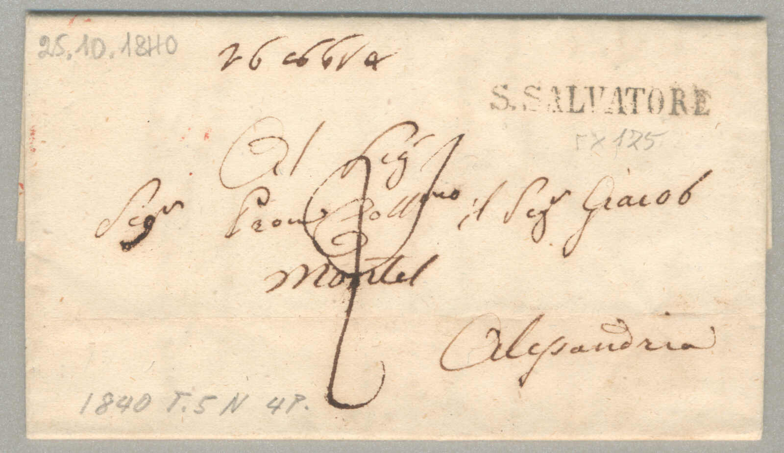1840, with neatly strike of S. Salvatore (Monferrato), on folded letter, ex Provera, XF! Estimate 120€. (Image) (imagea)