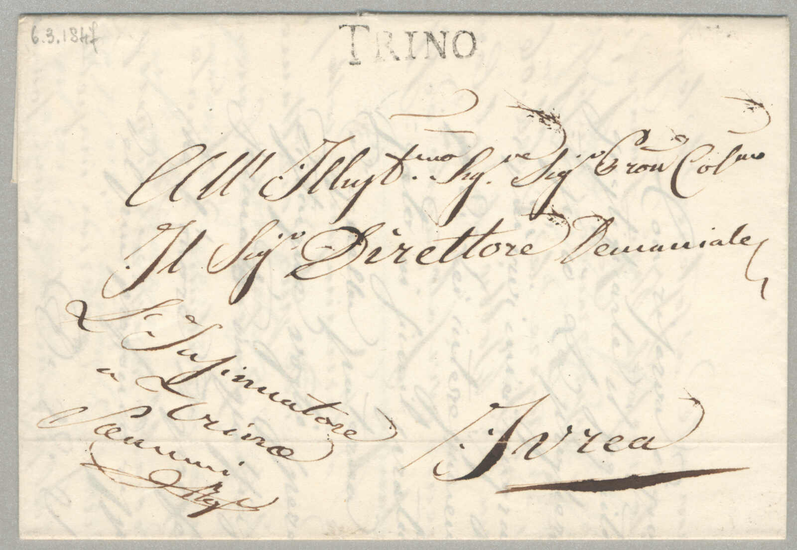 1829, with neatly strike of Trino, on folded letter, ex Provera, XF! Estimate 100€. (Image) (imagea)