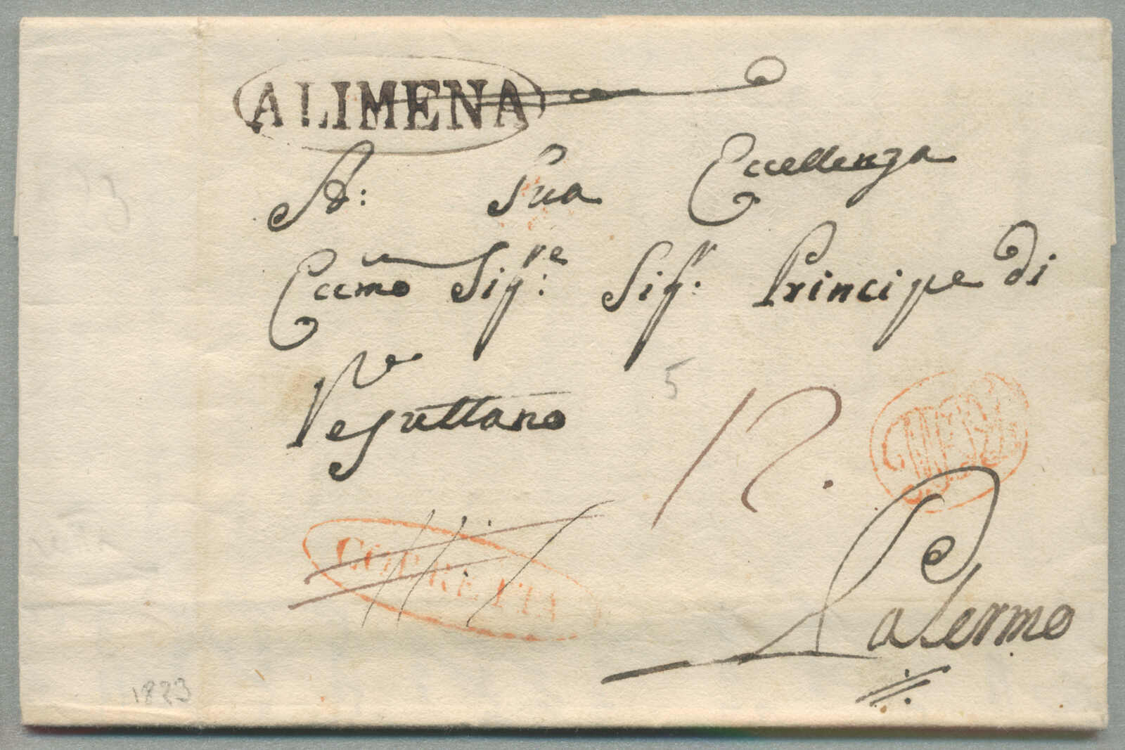 1823, with neatly strike of Alimena, on folded letter, ex Provera, XF! Estimate 100€. (Image) (imagea)