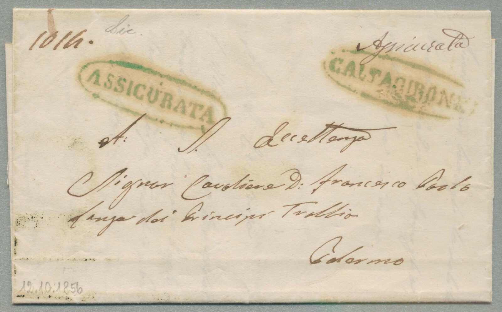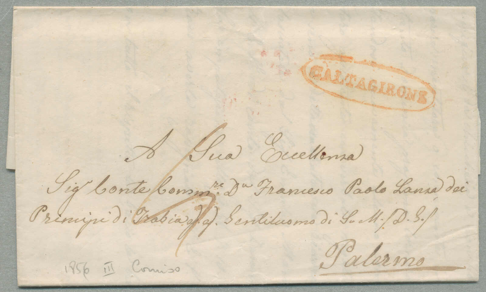 1856, with neatly strike of Caltagirone, on folded letter, ex Provera, XF! Estimate 200€. (Image) (imagea)
