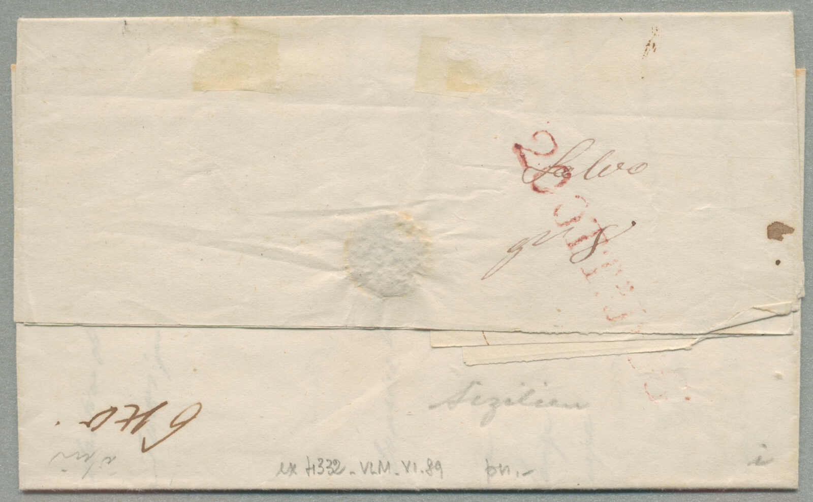 1854, with neatly strike of Bivona, on folded letter, ex Provera, XF! Estimate 100€. (Image) (imagea)