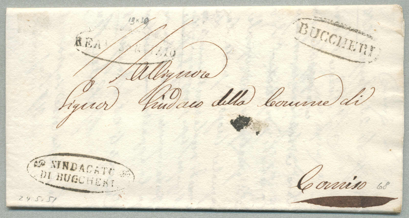 1851, with neatly strike of Buccheri, on folded letter, ex Provera, XF! Estimate 100€. (Image) (imagea)