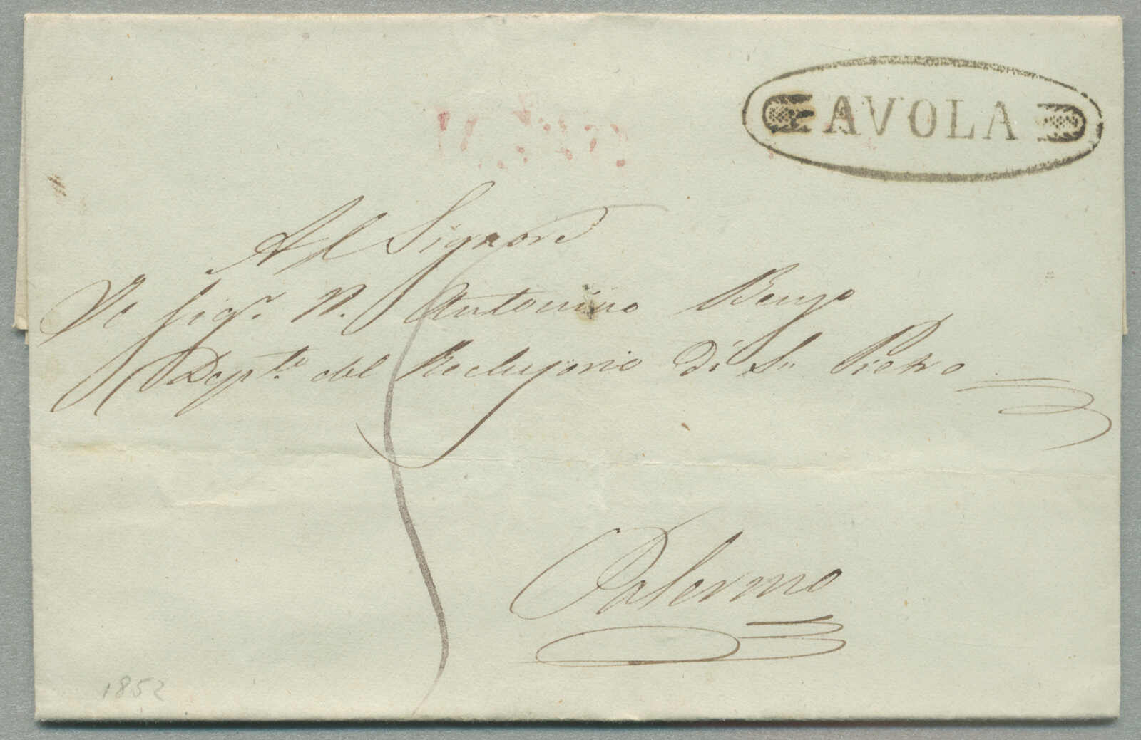 1852, with neatly strike of Avola, on folded letter, ex Provera, XF! Estimate 200€. (Image) (imagea)