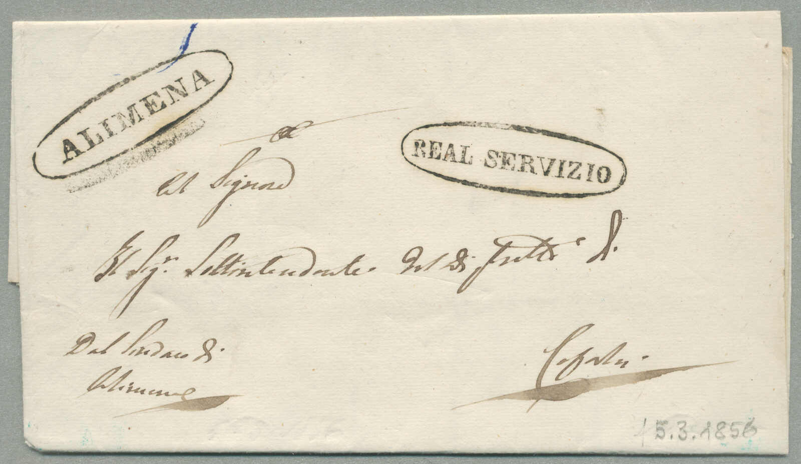 1856, with neatly strike of Alimena, on folded letter, ex Provera, XF! Estimate 200€. (Image) (imagea)