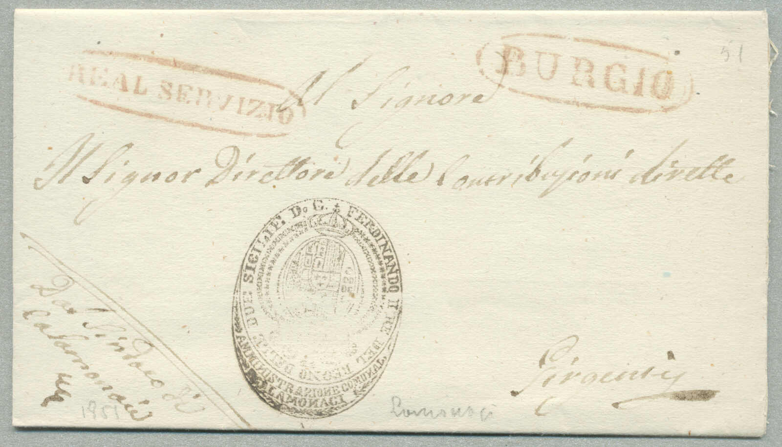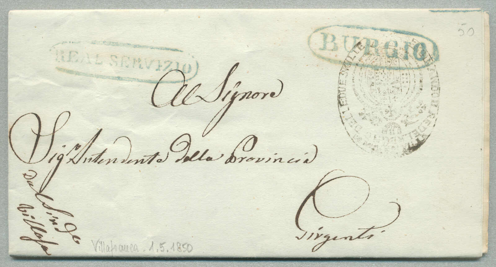 1850, with neatly strike of Burgio, on folded letter, ex Provera, XF! Estimate 120€. (Image) (imagea)
