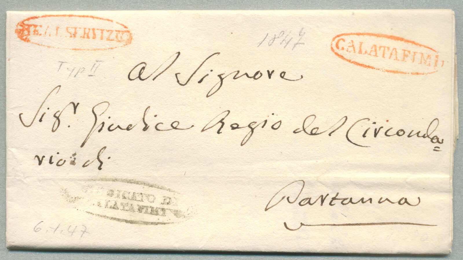 1847, with neatly strike of Calatafimi, on folded letter, ex Provera, XF! Estimate 100€. (Image) (imagea)
