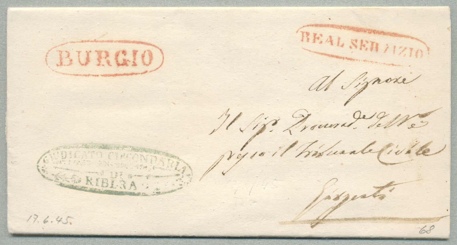 1845, with neatly strike of Burgio, on folded letter, ex Provera, XF! Estimate 120€. (Image) (imagea)