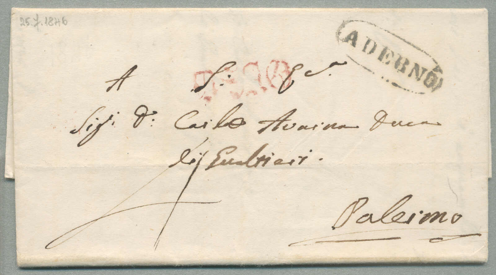1846, with neatly strike of Aderno, on folded letter, ex Provera, XF! Estimate 100€. (Image) (imagea)