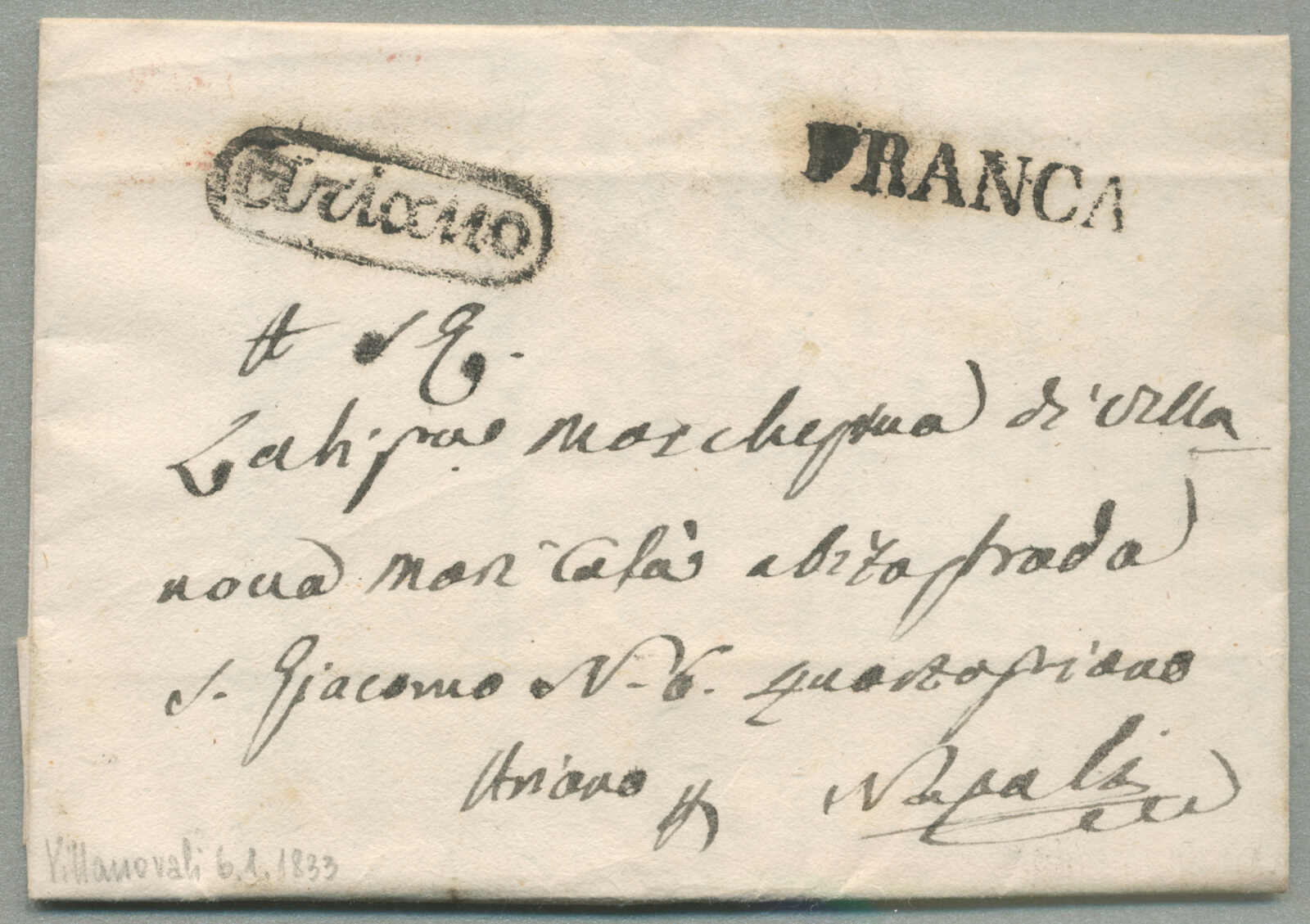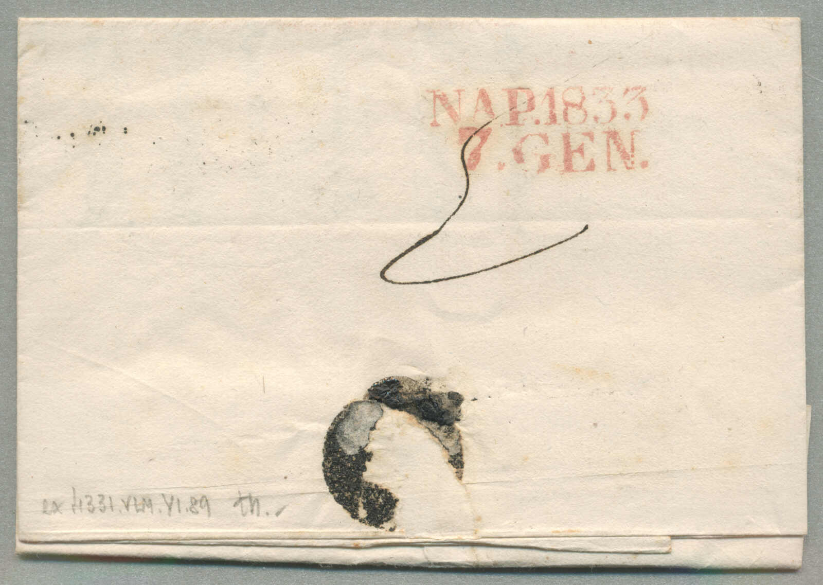 1833, with neatly strike of Adriano, on folded letter, ex Provera, XF! Estimate 120€. (Image) (imagea)