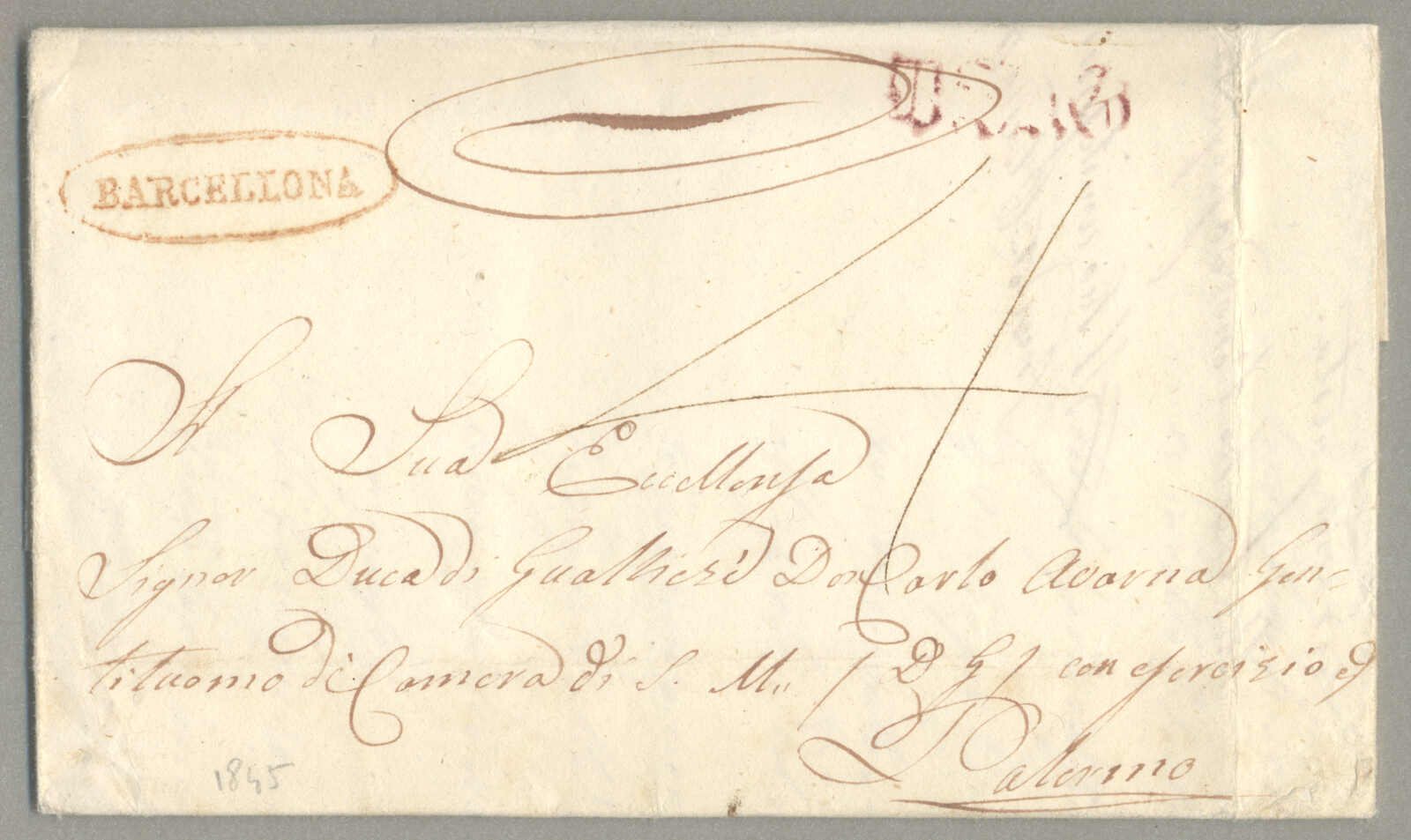 1845, with neatly strike of Barcellona, on folded letter, ex Provera, XF! Estimate 100€. (Image) (imagea)