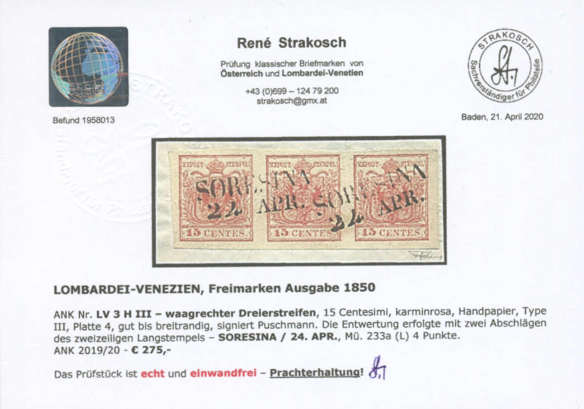 Get Market Data for [Austria (Lombardy-Venetia) 3HIII (3), LV, Sass 4p] Visual Pricing Guide Sample Census