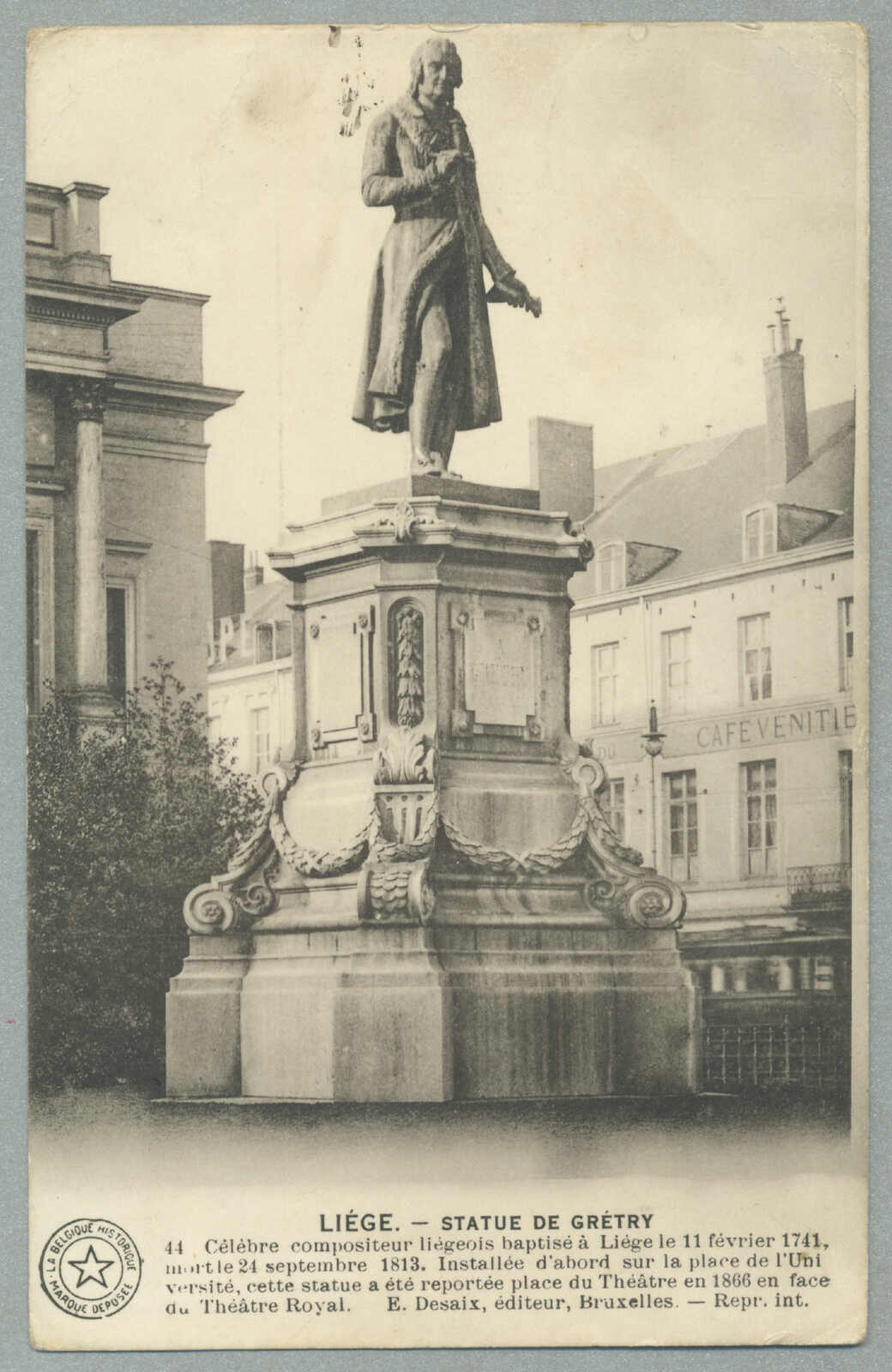 1919, British post offices abroad, from Antwerp to Brocklesby, Kirmington, picture postcard showing bronze statue of composer Andre Gretry in Liege, mailed by British soldier of the Royal Engineers, bearing clear ARMY POST OFFICE S 110