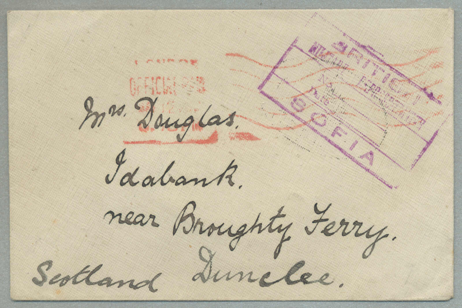 REPRESENTATIVE BULGARIA with boxed frame, manuscript address to Idabank near Broughty Ferry, reverse with intact large red wax seal, sent by British representative attached to the Interallied Control Commission for Bulgaria shortly after the end of