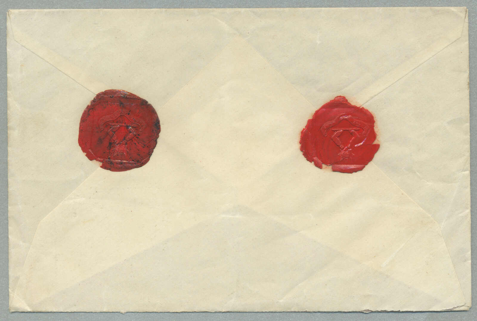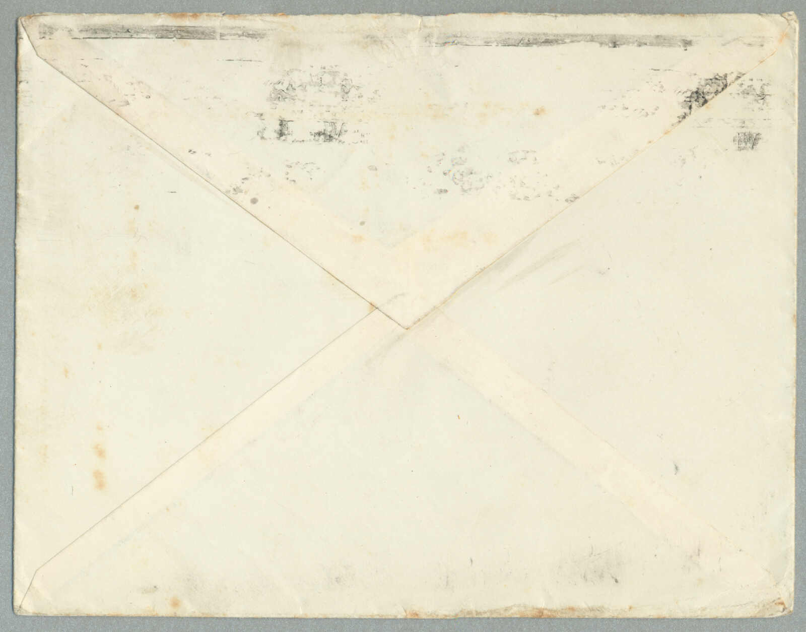 additional bilingual boxed label PRENEZ UN COMPTE DE CHEQUES POSTAUX / NEEMT EENE POSTCHECK REKENING, reverse with same large circular cachet, flap tear at bottom not affecting markings, part of a rare sequence of three intelligence cachets used in