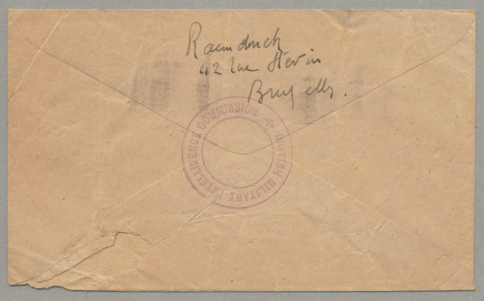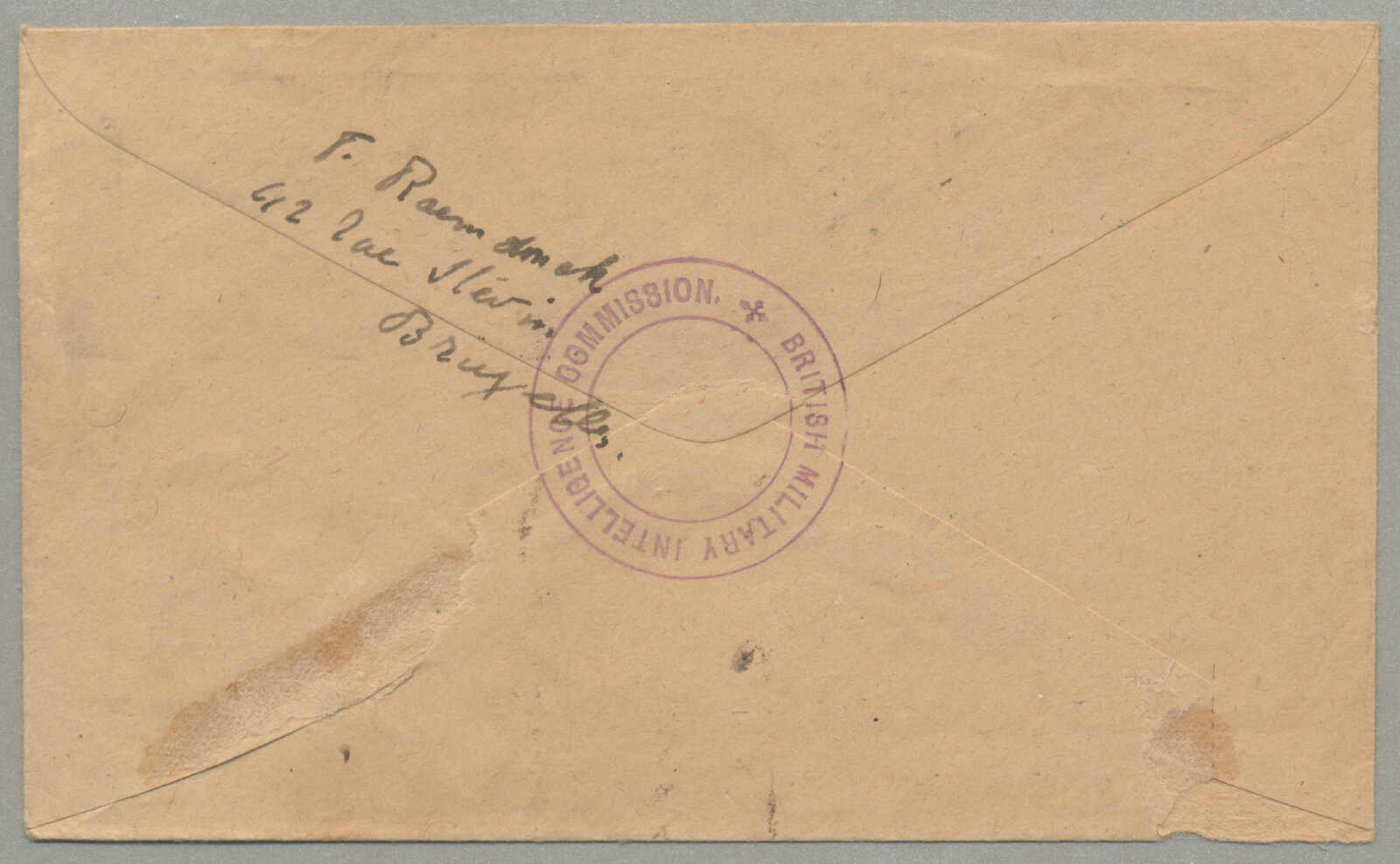 following World War I, part of a series of covers documenting the extensive intelligence operations established by the British in postwar Belgium, ex Kugel, XF! Estimate 150€. (Image) (imagea)
