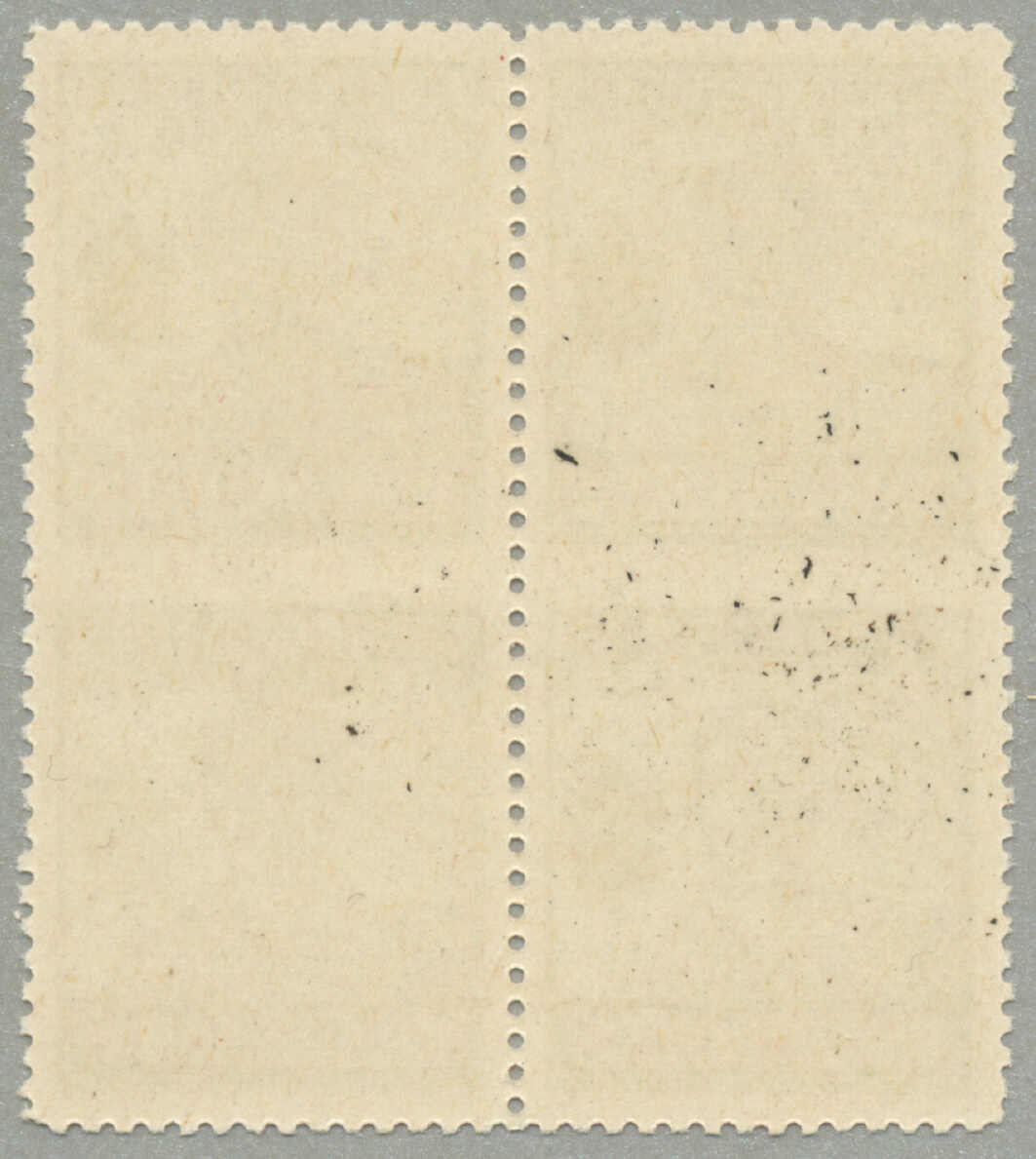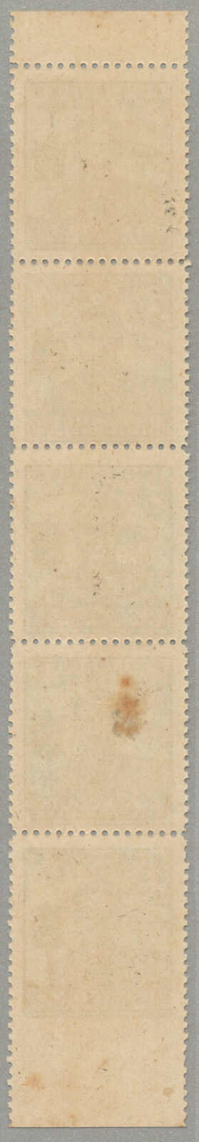 6506 nh image1946, vertical mint strip of (5) 2c Boy Scouts SILVER JUBILEE stamps, brown and green, full selvage at top and bottom, bottom stamp with imperforated, full original gum, fresh and scarce positional piece with clear printing flaw, VF! Estimate 100€. (Image) (imagea) (All Images)
